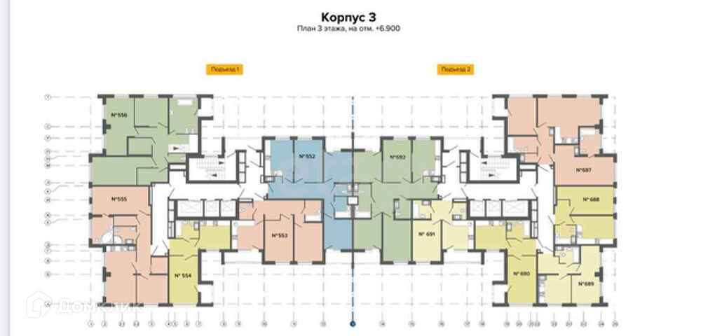 Квартира расположена в корпусе 3, который отличается своей компактностью, а также небольшим количеством квартир на этажах. Квартира находится на 3 этаже из 24-х