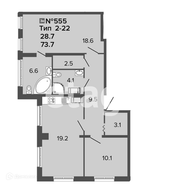 Общая площадь 73.7 м2