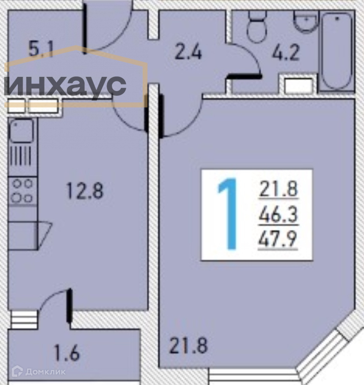 Общая площадь 47.9 м2