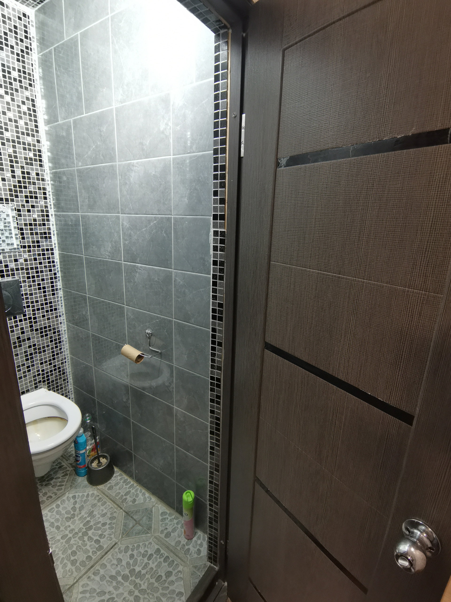 В туалете тёплый пол, качественная плитка. В ванной комнате требуется небольшой ремонт.
