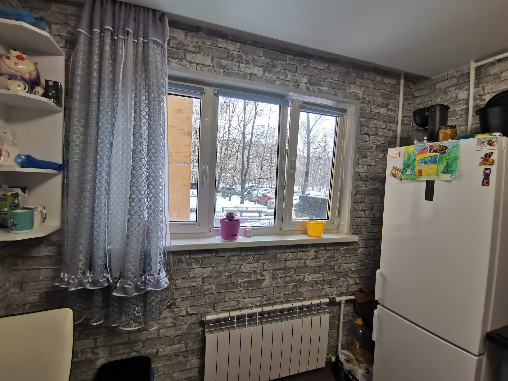 Окна выходят на тихий, утопающий в зелени, двор.