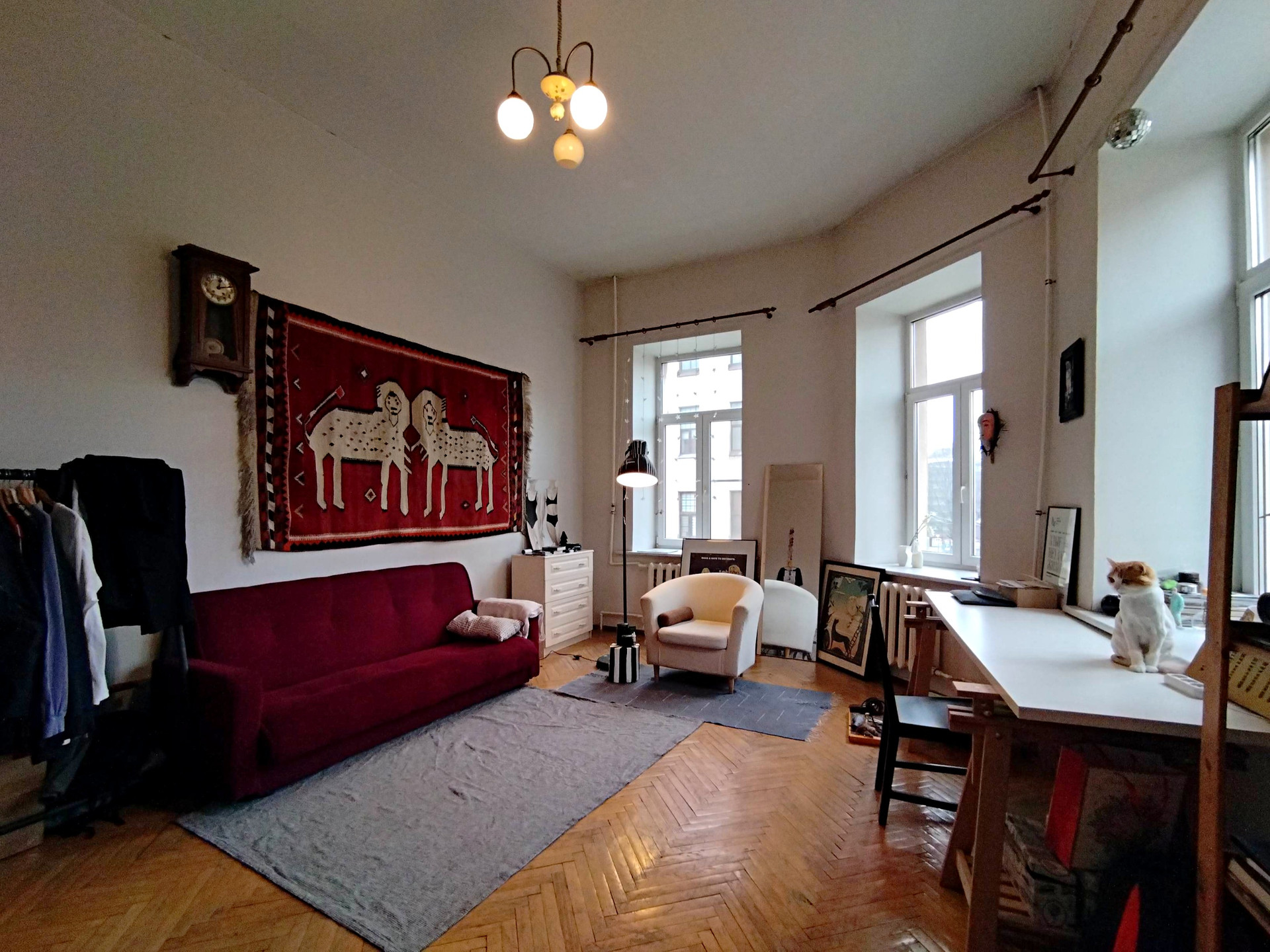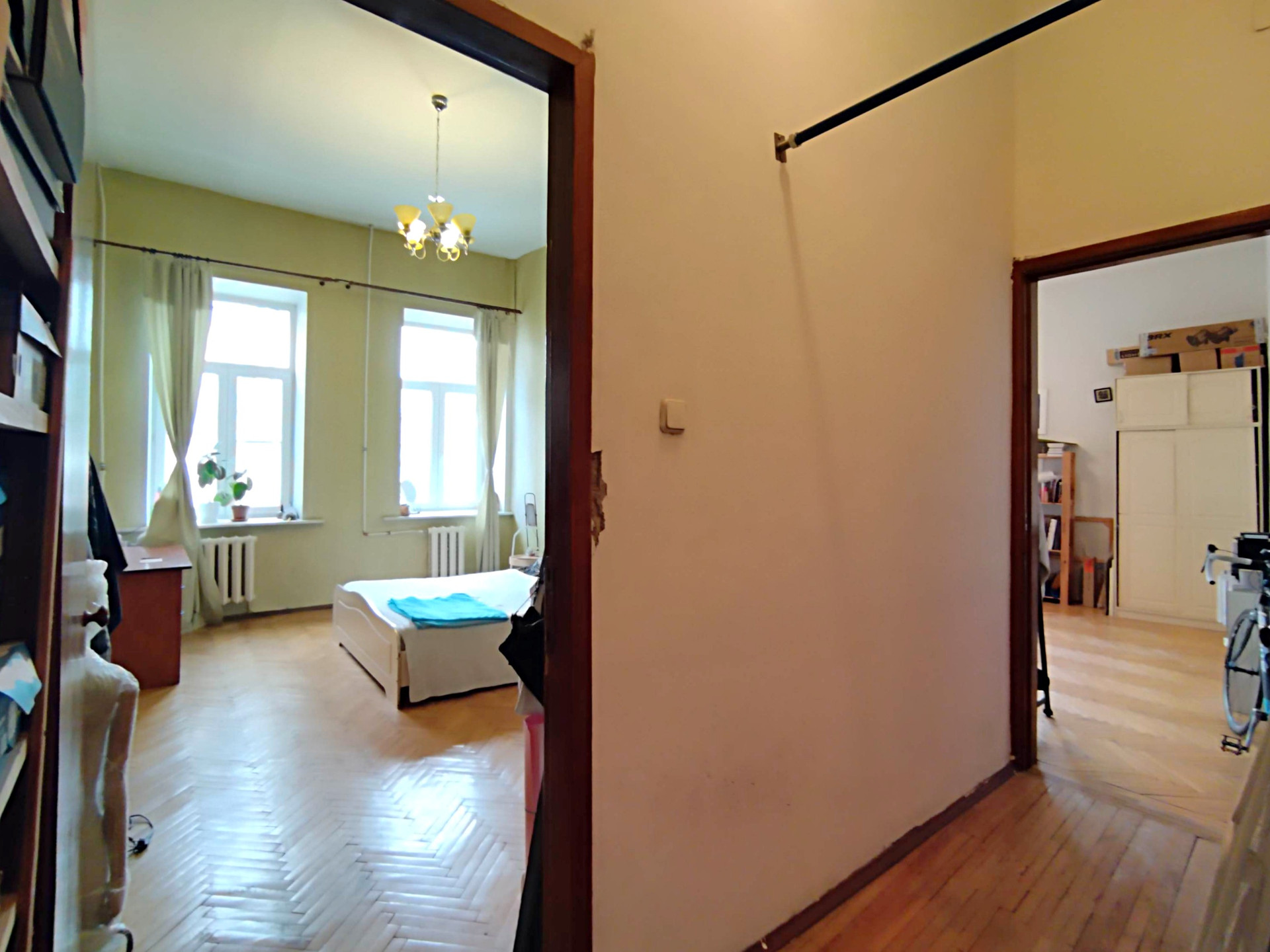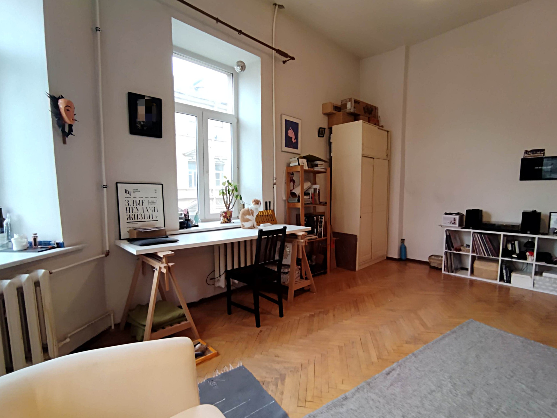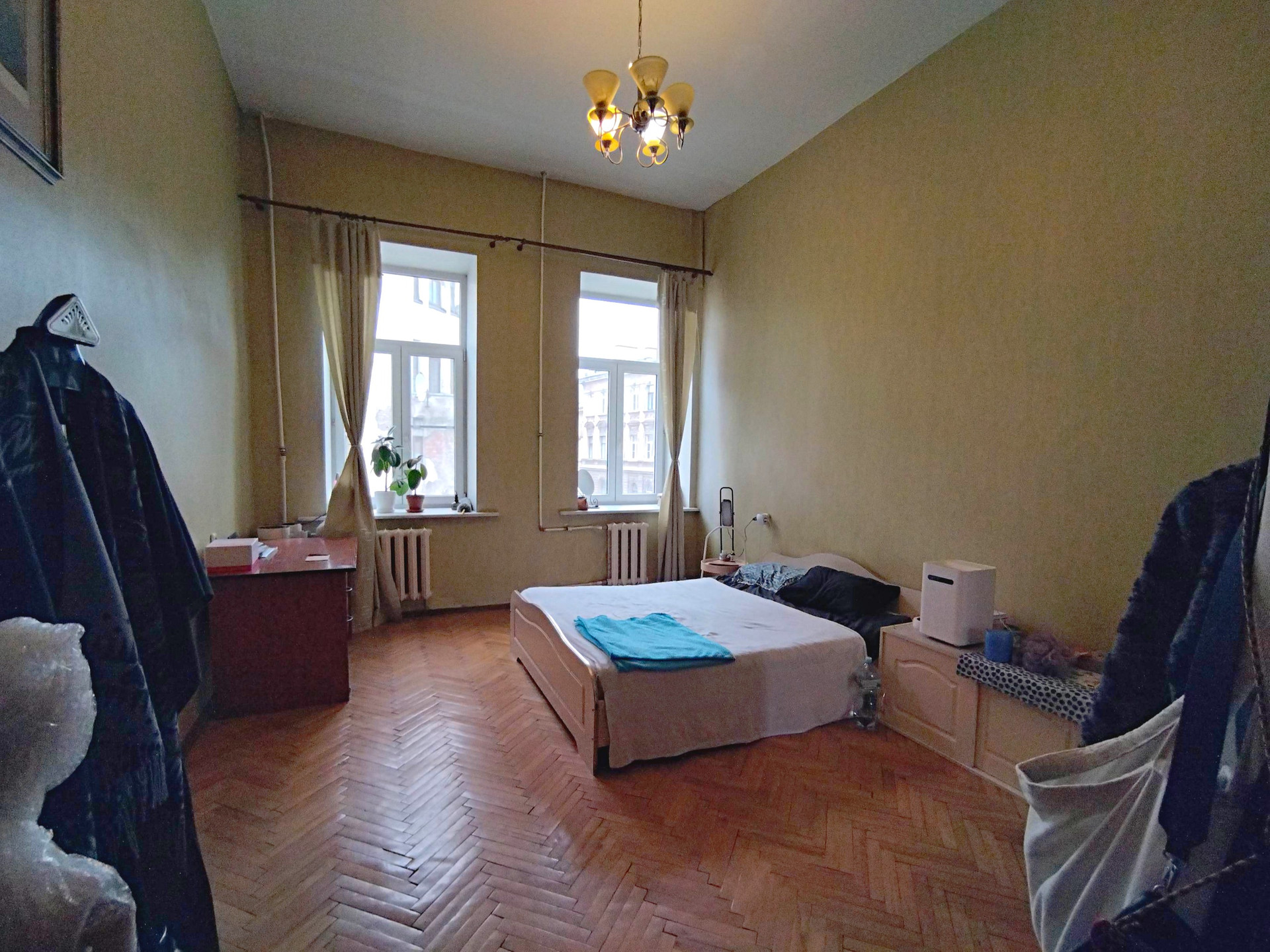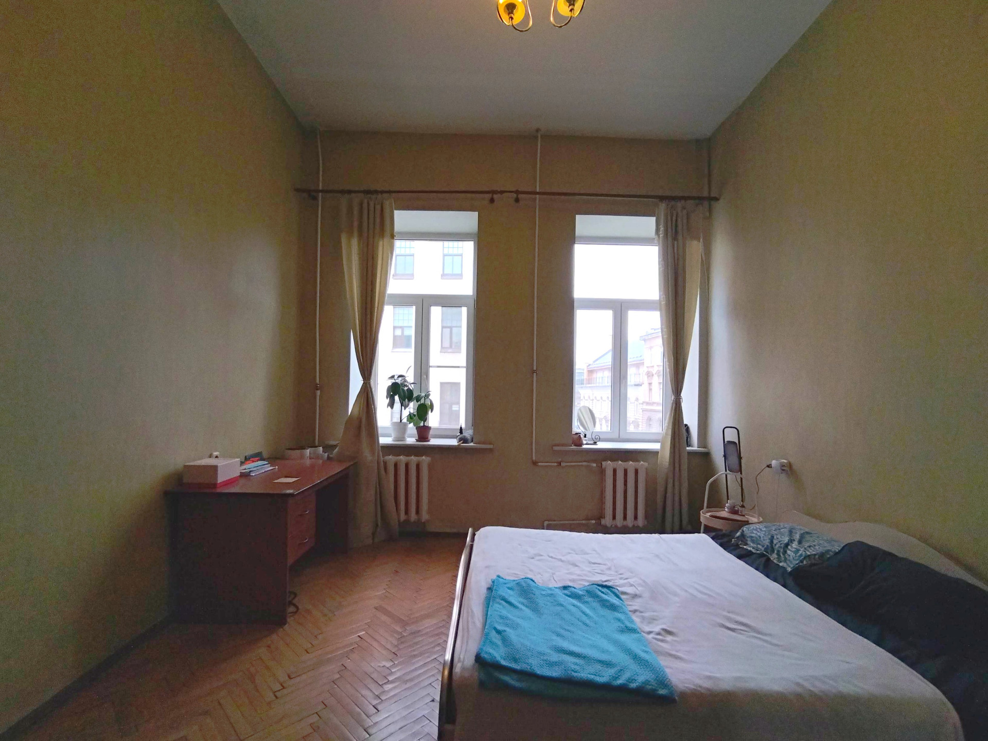 На полу паркет, окна выходят во двор и на улицу.
