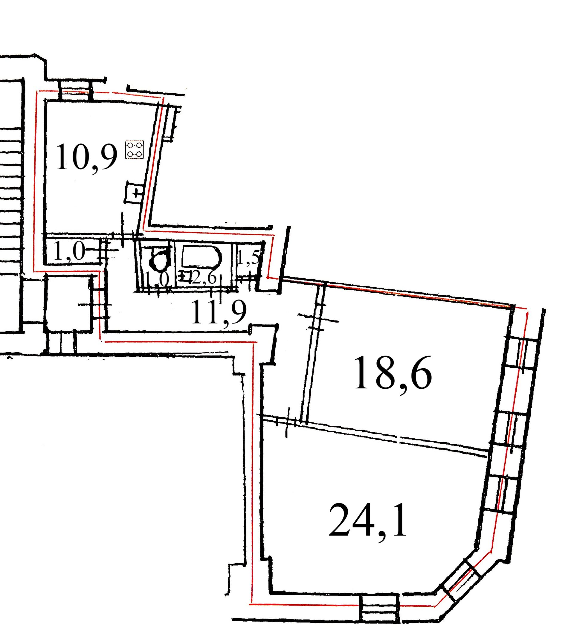Жилая площадь 42.7 кв.м, кухня 10.9 кв.м. Комнаты: 18.6/24.1 м2, типовой ремонт, комнаты изолированные. Квартира с мебелью, интернет. Раздельных санузлов - 1.