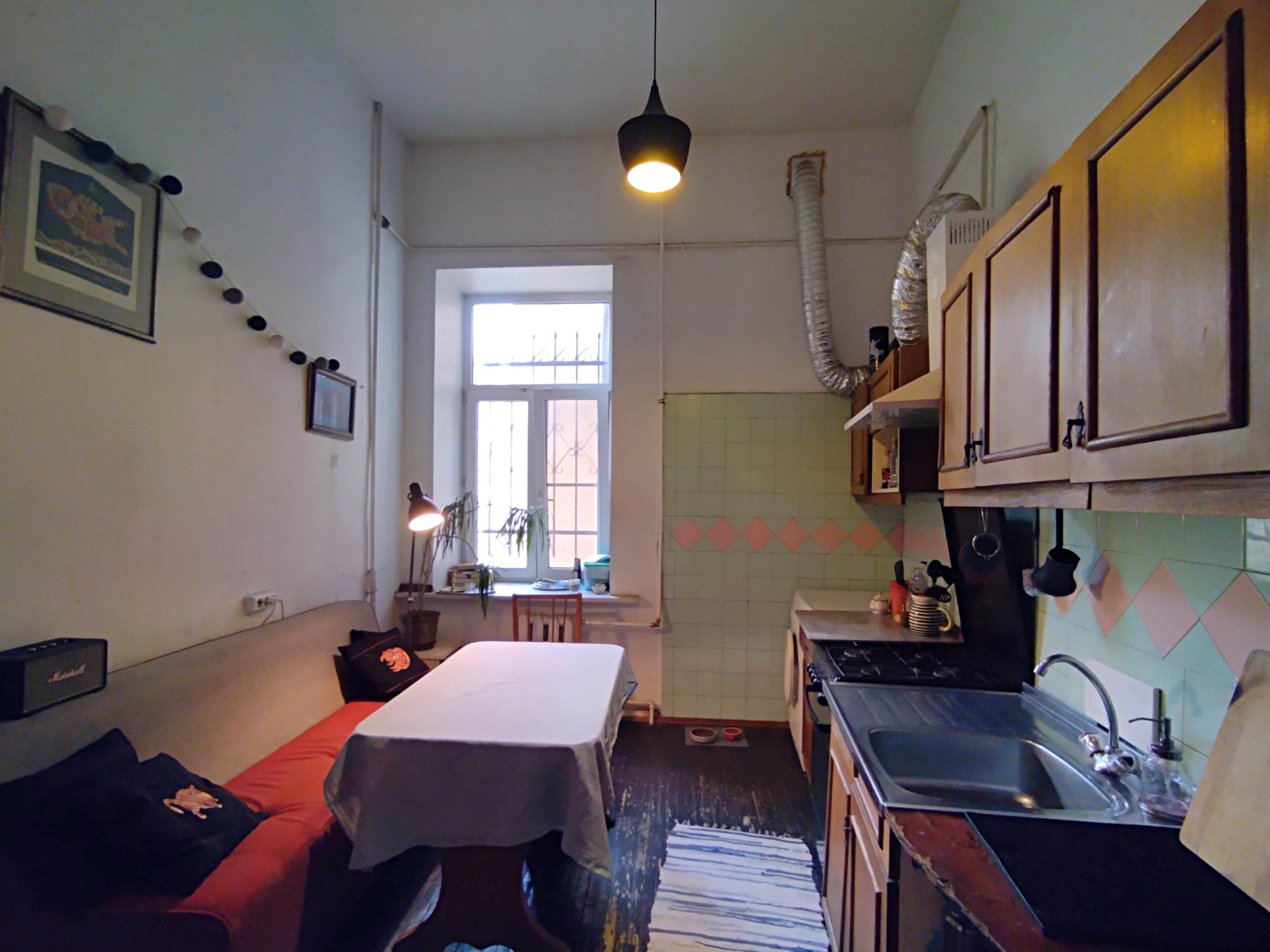 Квартира располагается на 3 этаже 4-этажного кирпичного дома 1894 года постройки, высота потолков 3.8 м, капитальный ремонт производился в 1984 году, в доме газ, центральное отопление.
