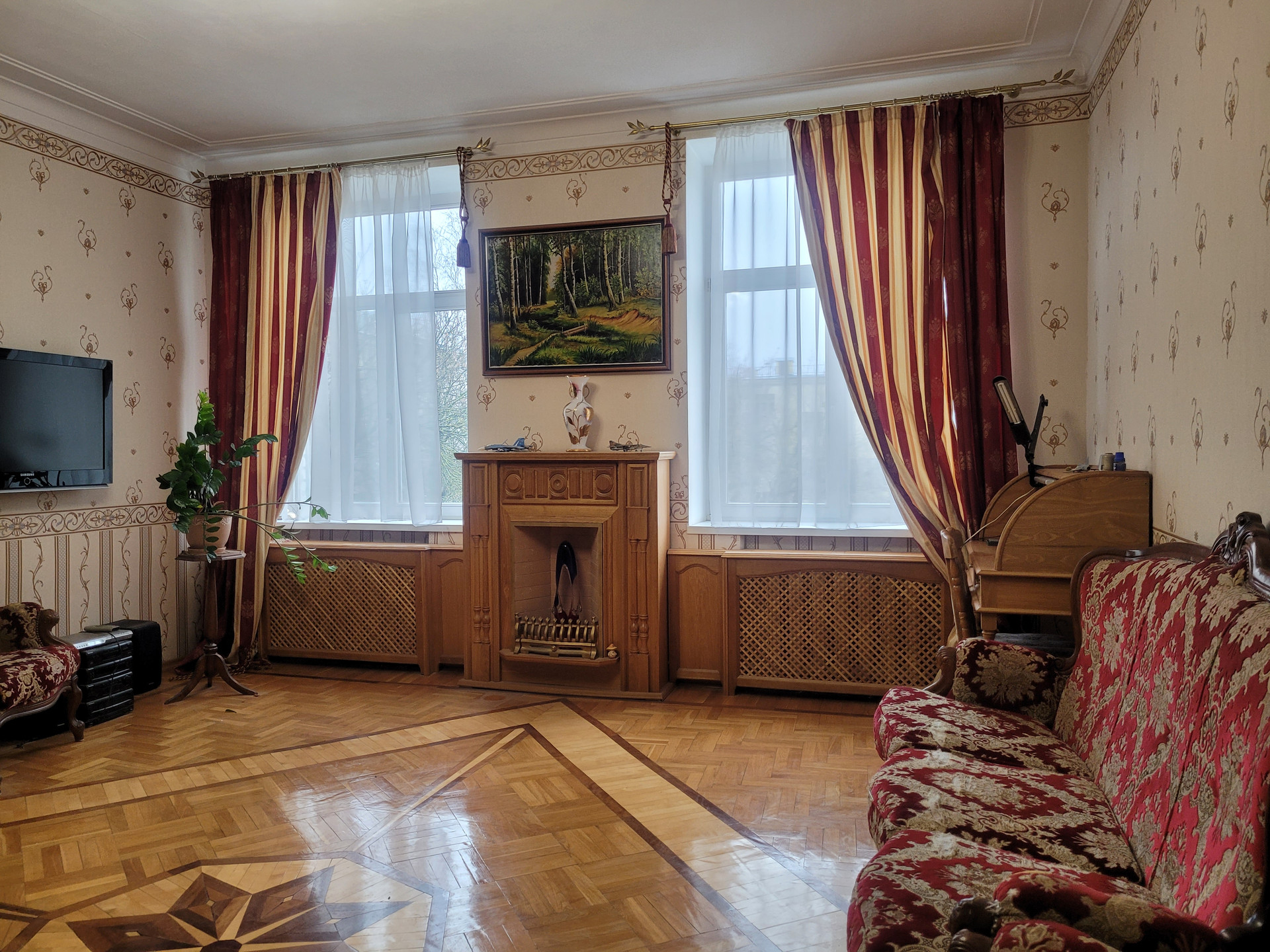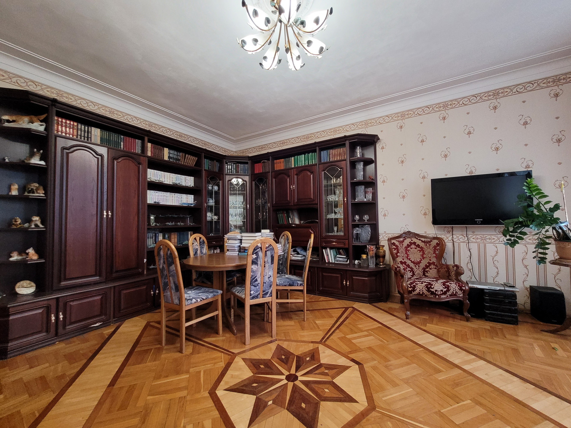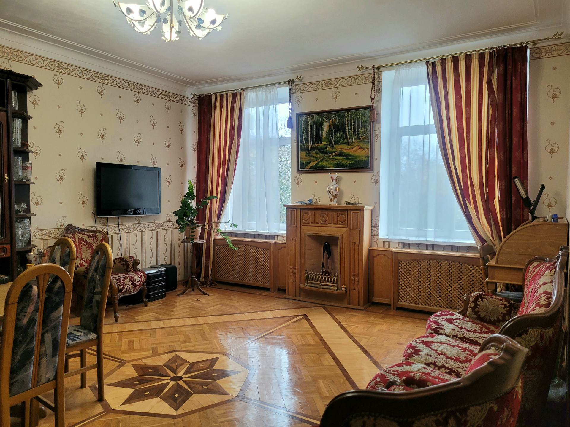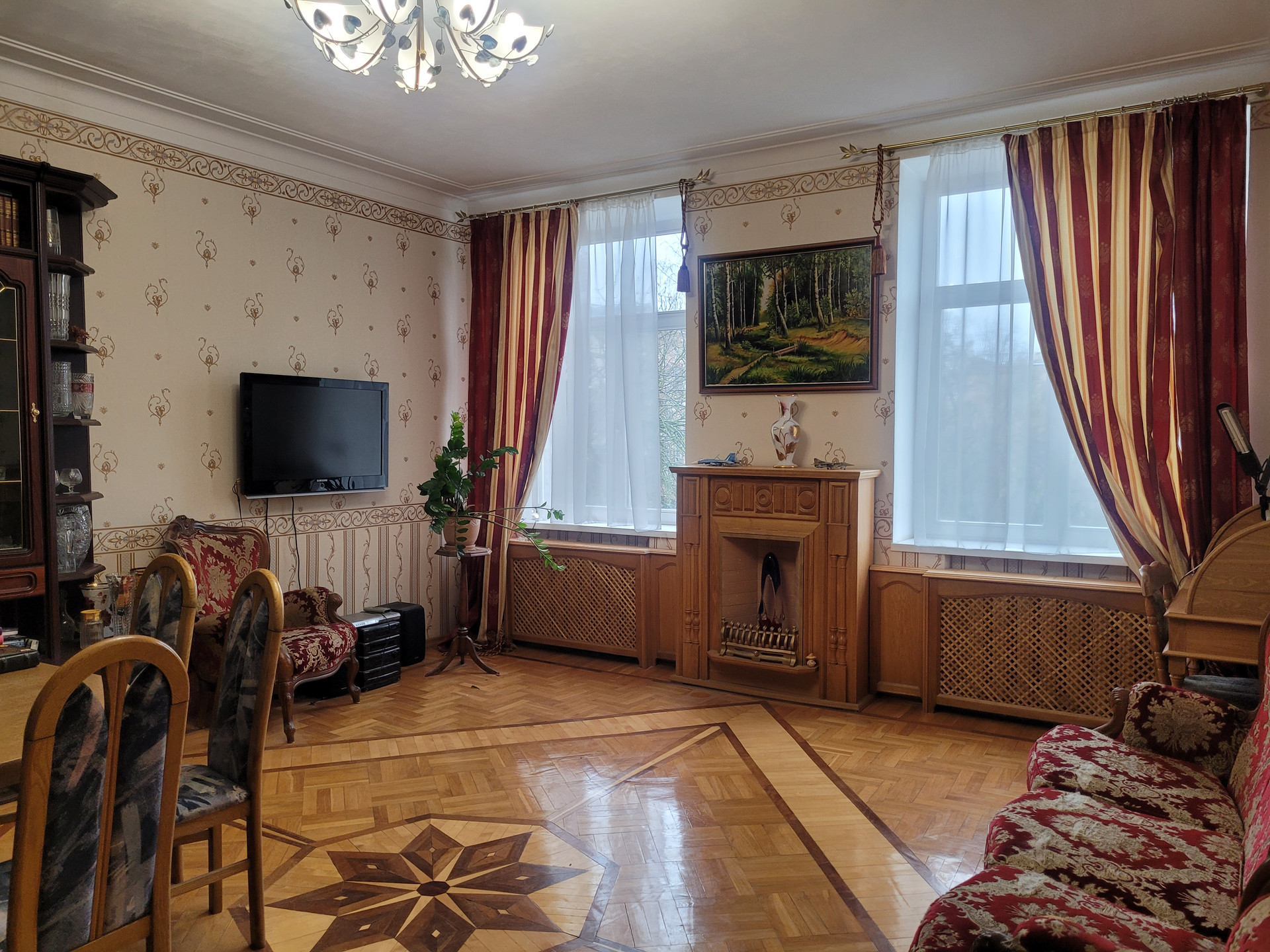 В квартире сохранены паркет, лепнина на потолках, состояние отличное.