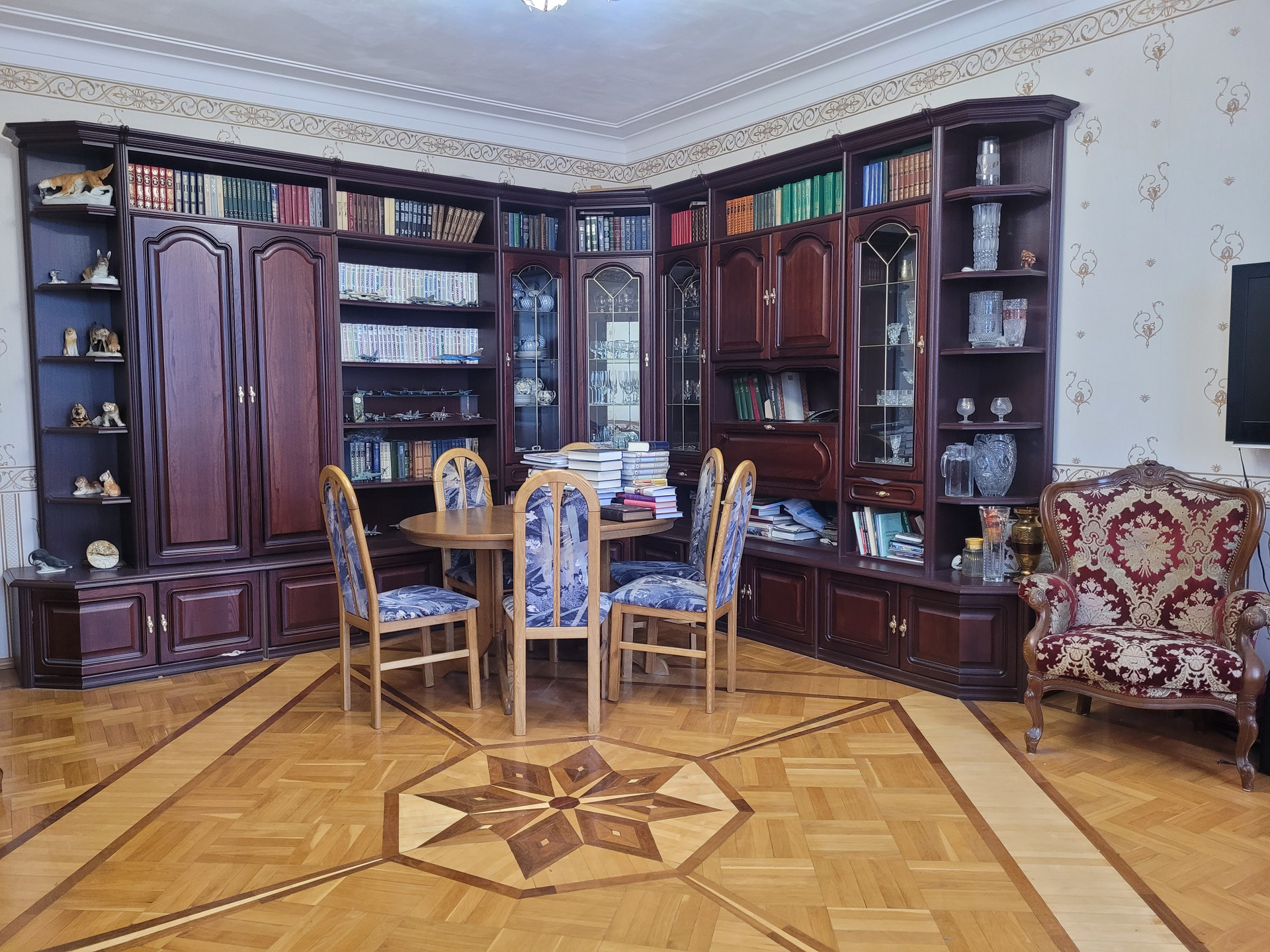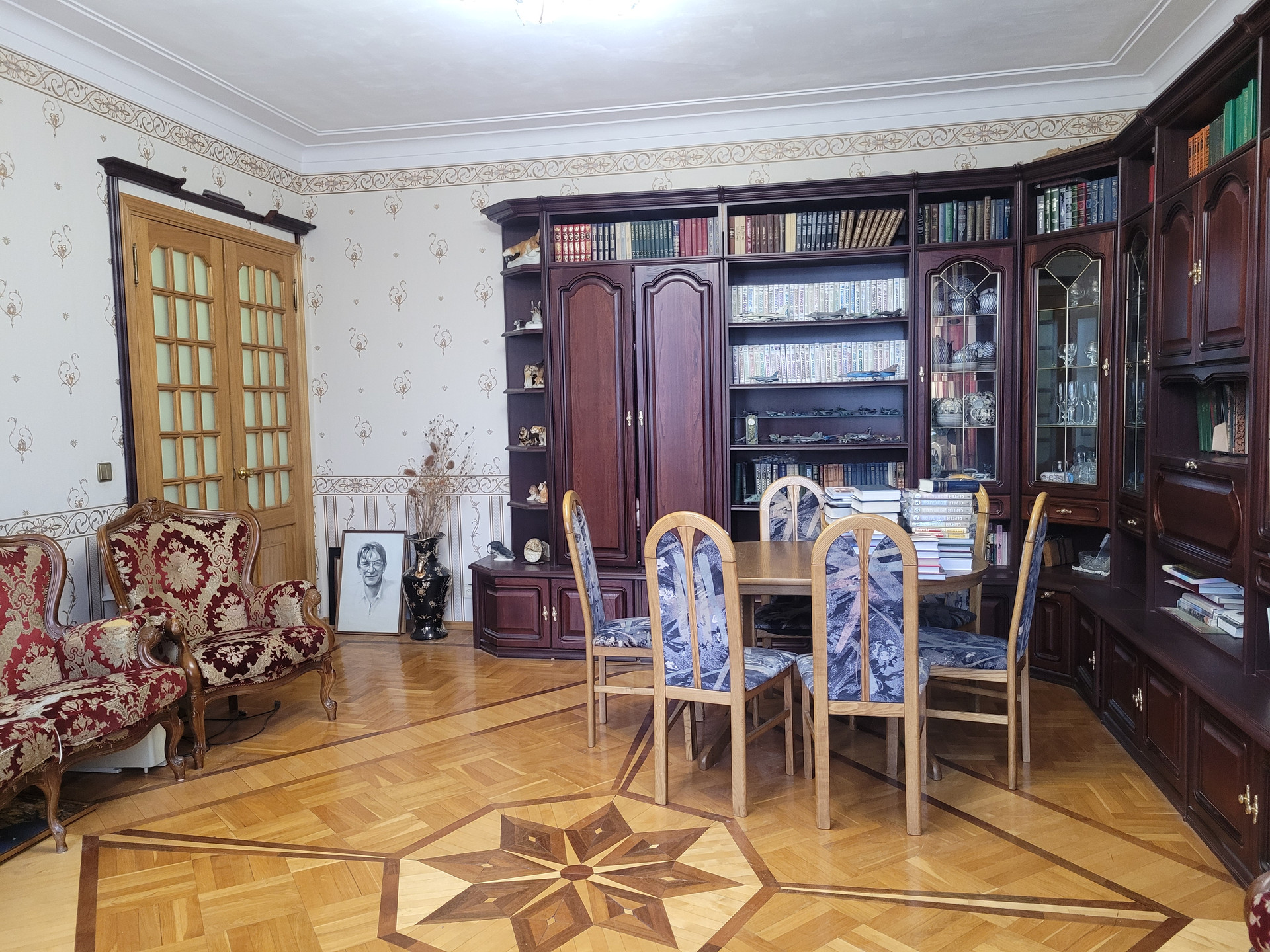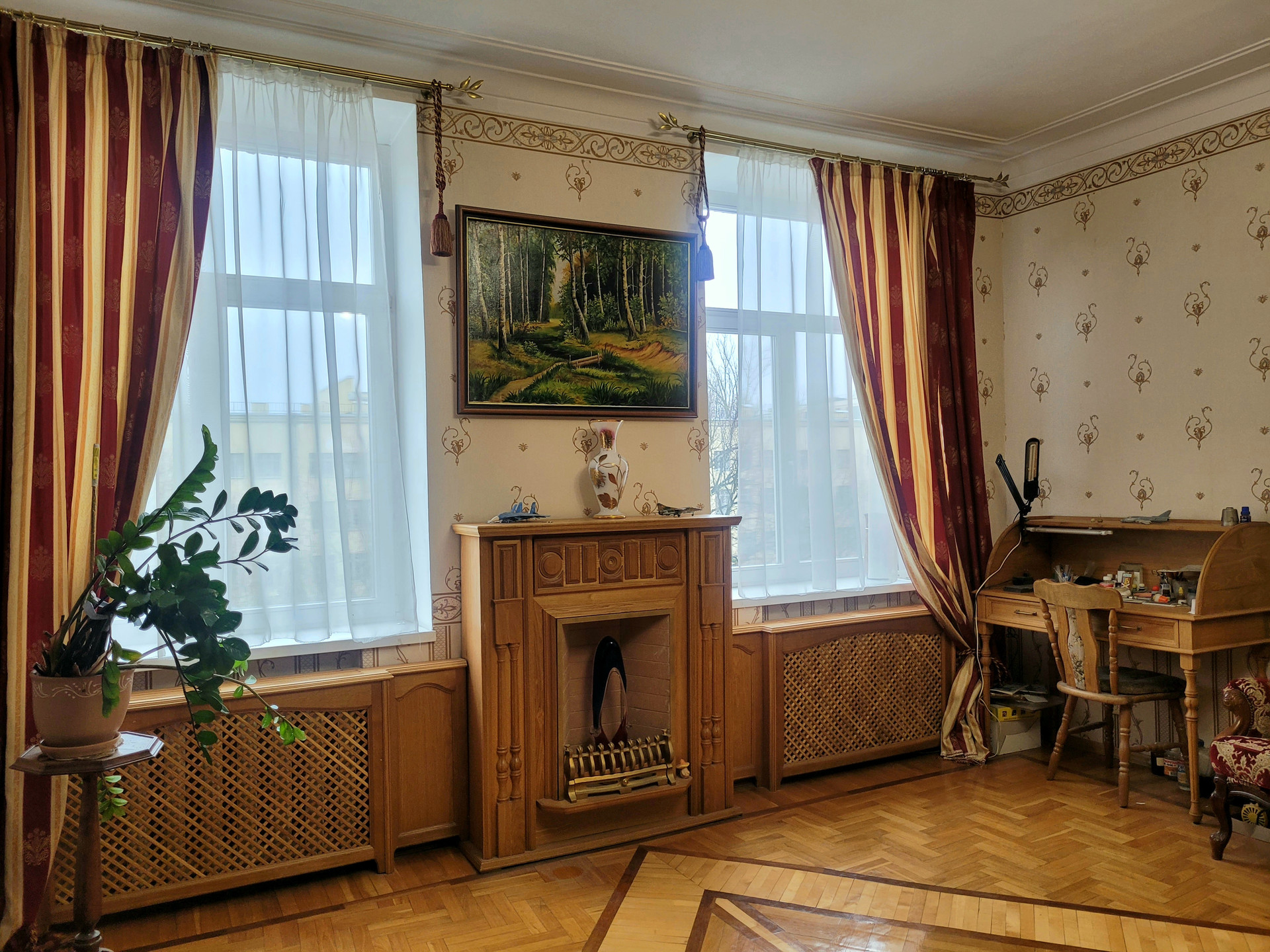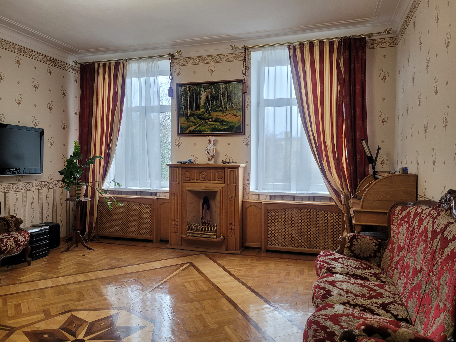 В квартире сохранены паркет, лепнина на потолках, состояние отличное.