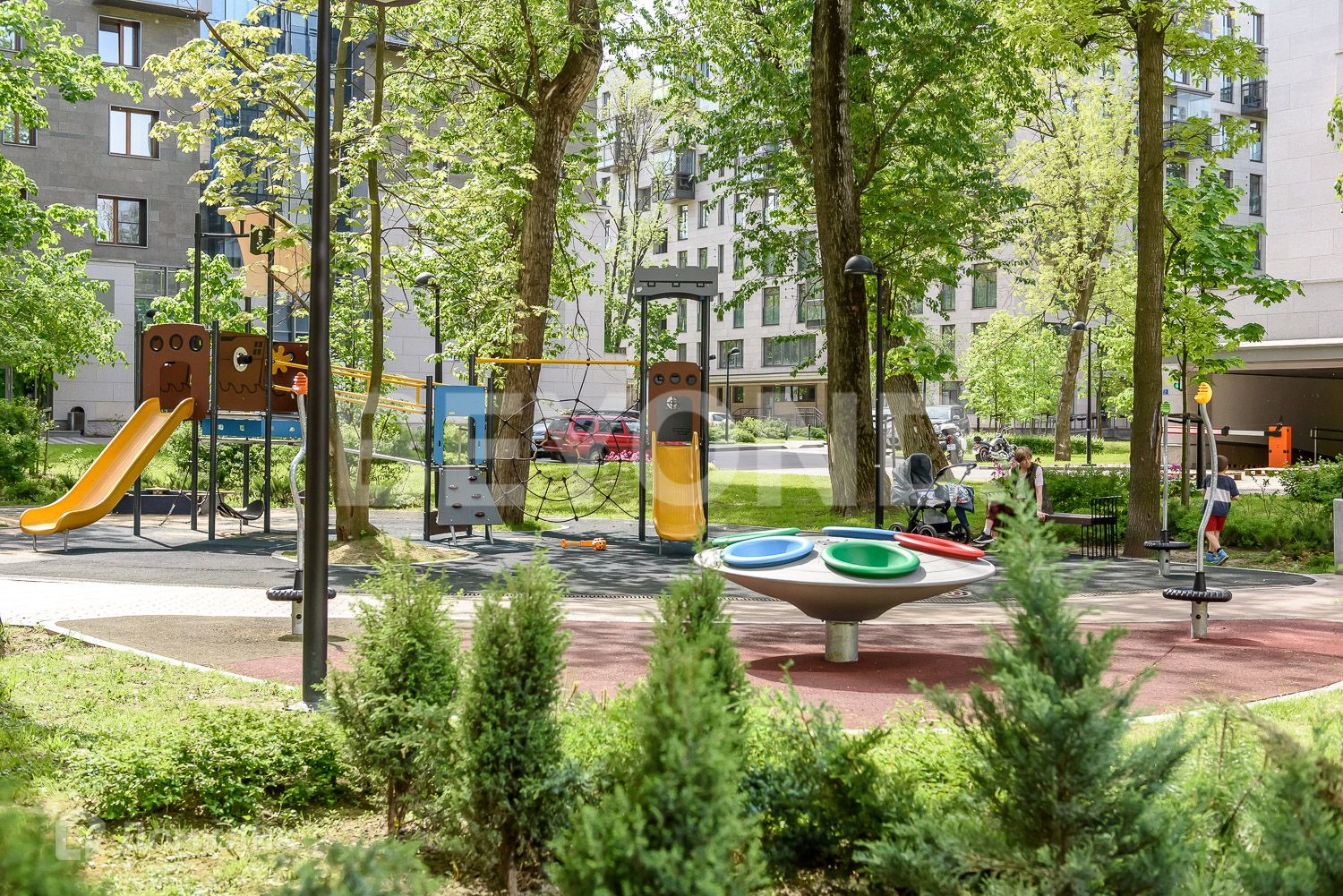Утопающие в зелени корпуса расположены на собственной закрытой территории с детскими площадками, ландшафтным дизайном, прогулочными дорожками и зонами отдыха. Для безопасности функционирует круглосуточное видеонаблюдение, консьерж-служба, система автоматического контроля доступа.