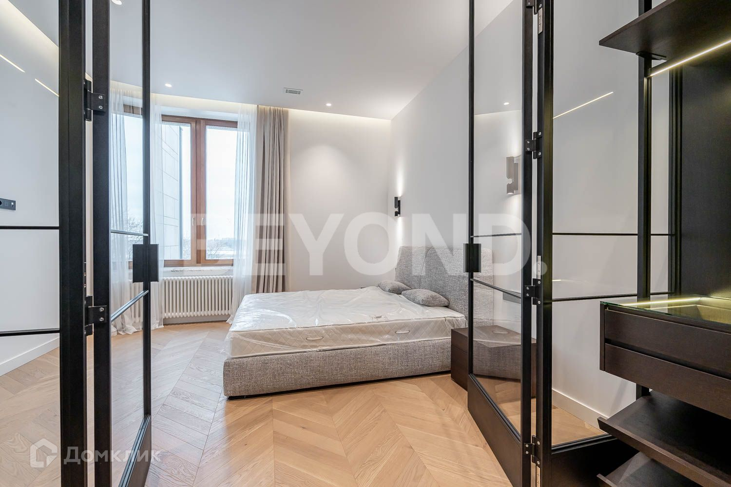 Двухсторонняя функциональная квартира с тремя спальнями общей площадью 133 кв. м. словно наполнена светом и воздухом благодаря обилию окон и высоким потолкам (более 3,4 м). Из всех комнат открывается захватывающий вид на парк и воду. Уникальная атмосфера квартиры достигнута благодаря единству выдержанного стиля, высококлассным отделочным материалам, премиальной итальянской мебели, самой современной инженерии и безупречному исполнению. Особое внимание в квартире уделено системам вентиляции, кондиционирования и освещению.