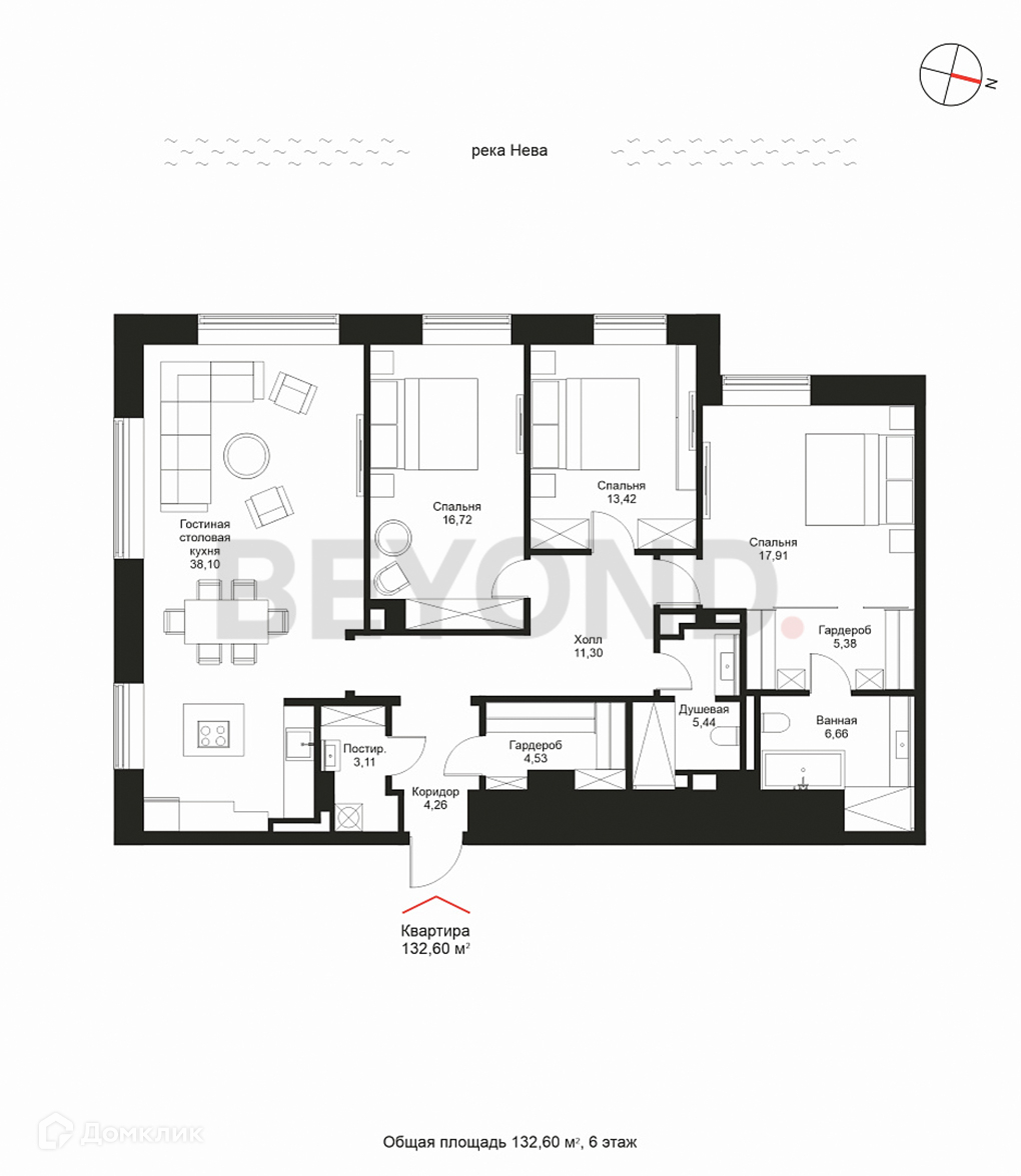 Общая площадь 132.6 м2