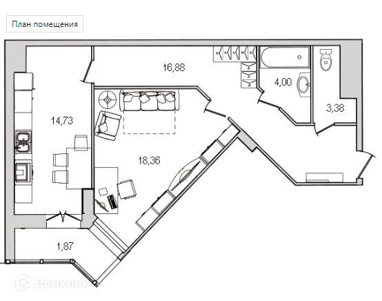 Жилая площадь 18.4 м2