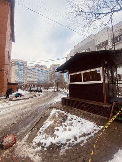 закрытый двор со шлагбаумом и охранником, есть свое парковочное место.