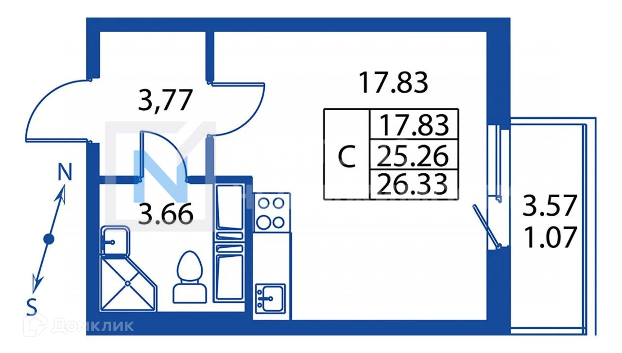 Общая площадь 25.3 м2