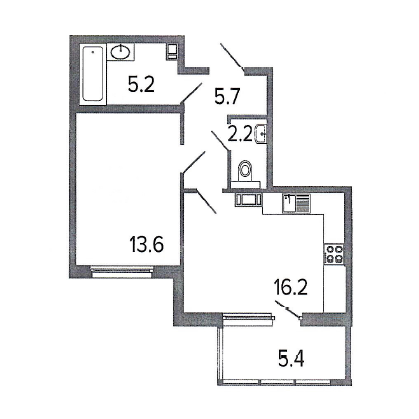 Жилая площадь 13.6 м2