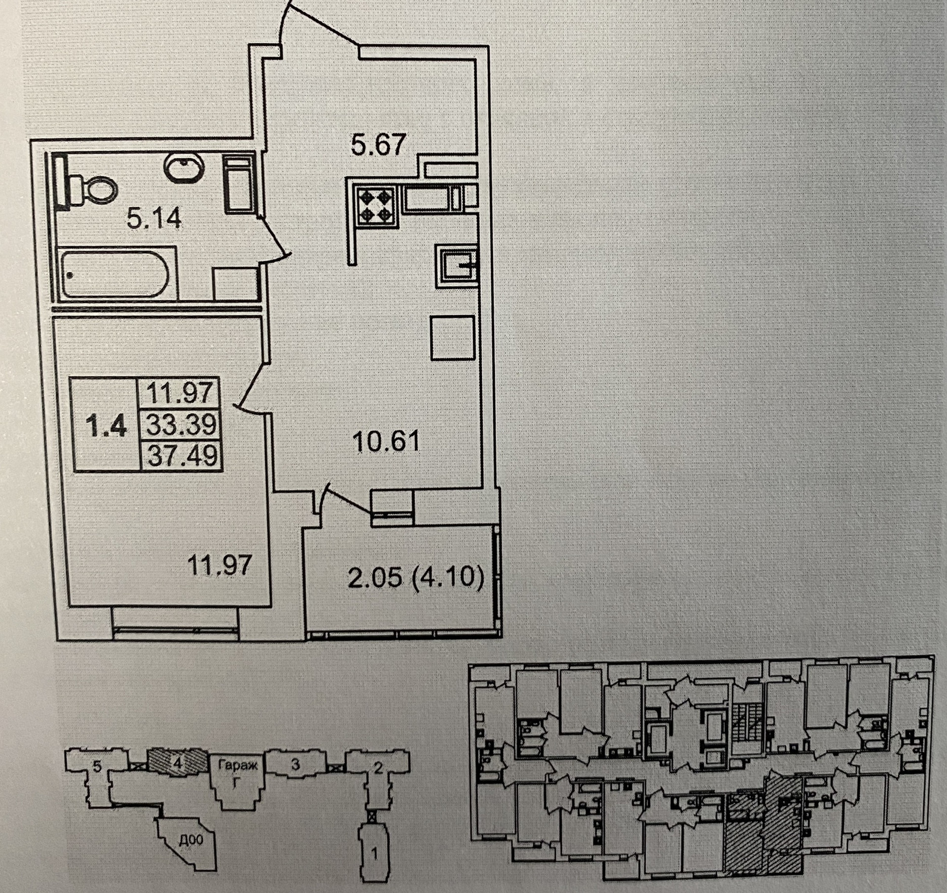 Общая площадь 33.9 м2