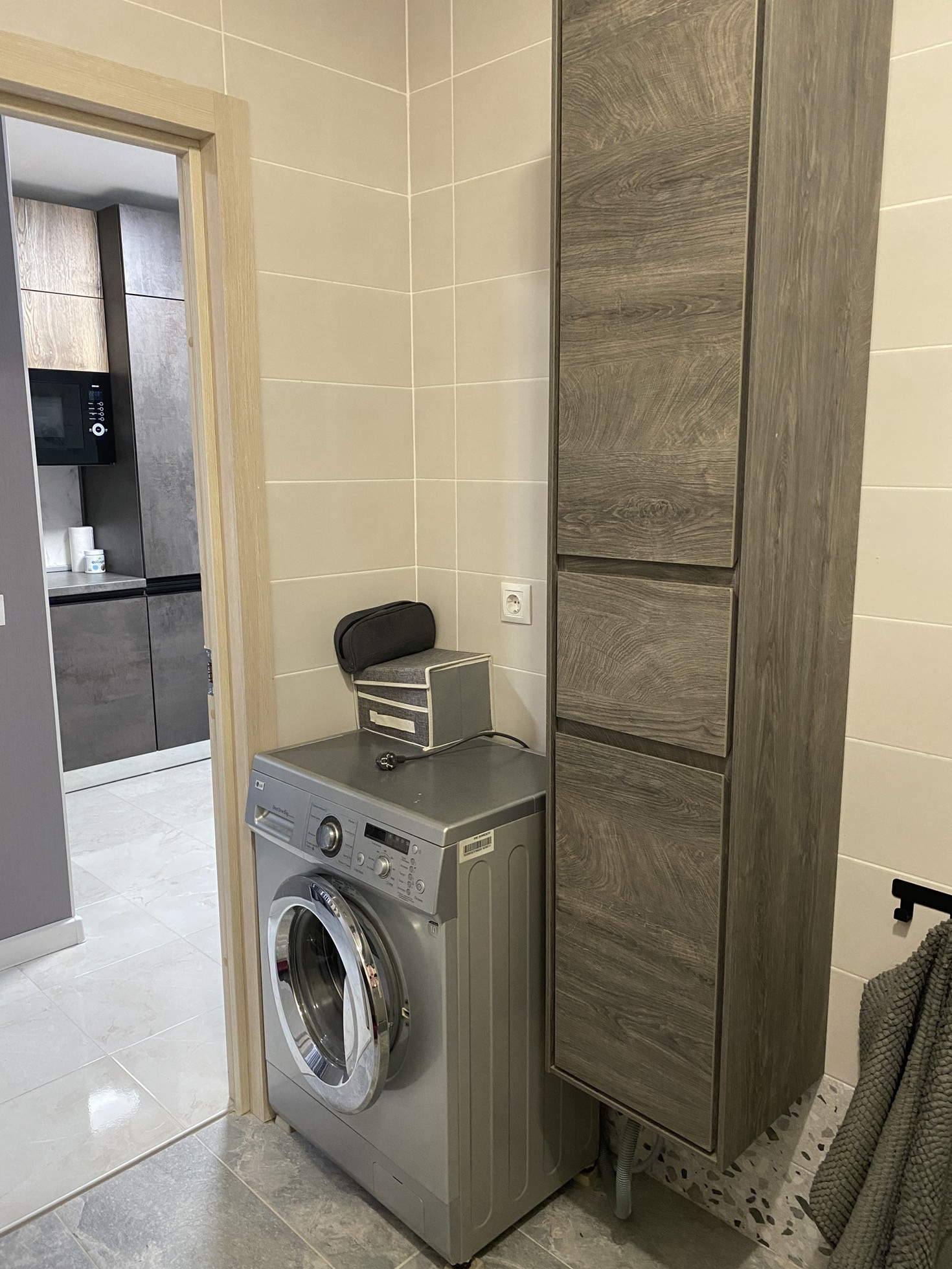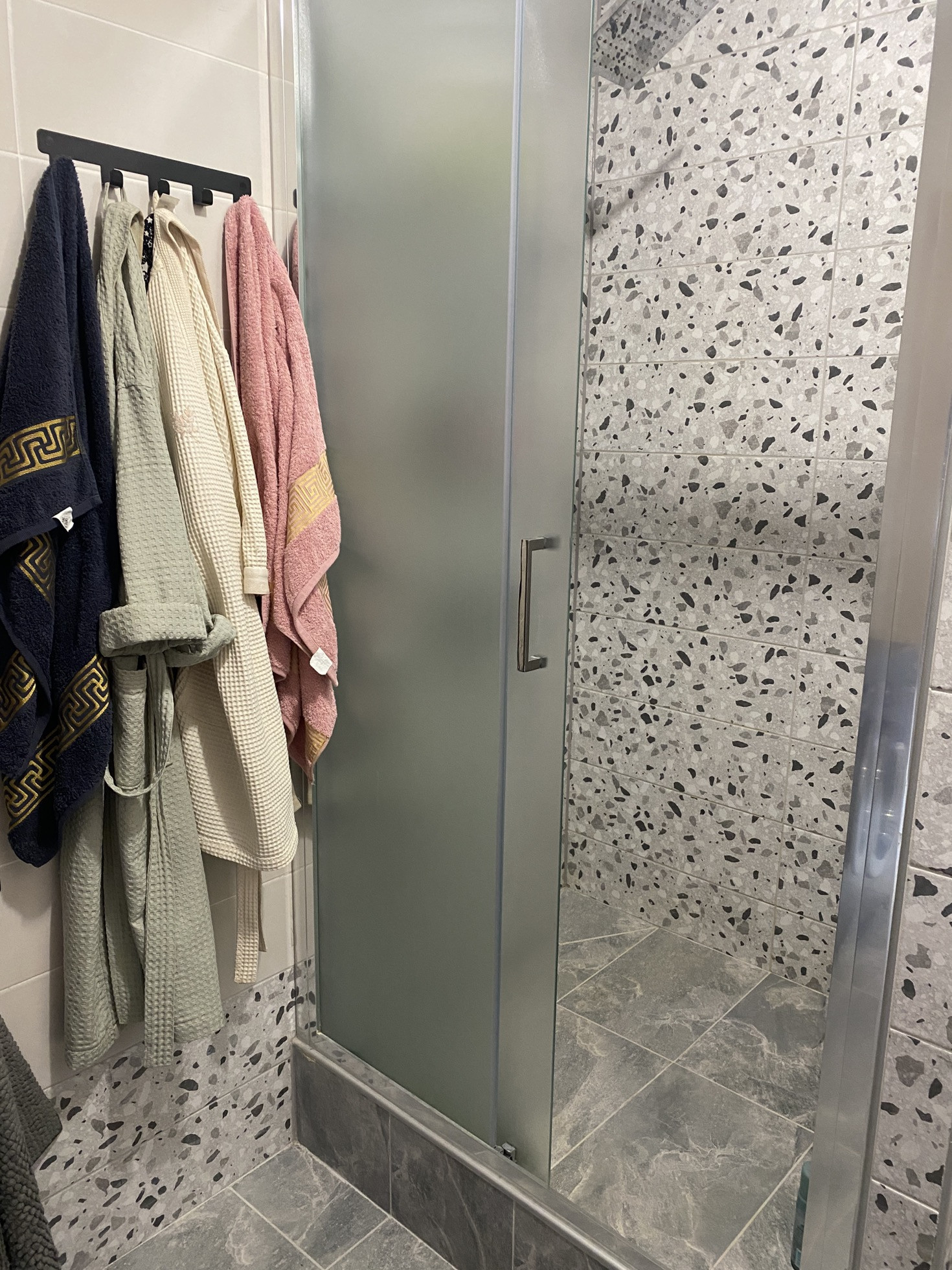 В ванной произведена замета труб от застройщика, установлен теплый пол.