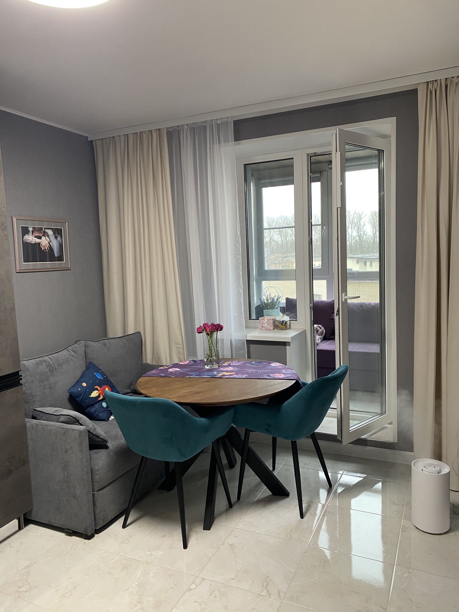 Квартира в новом доме с очень хорошим ремонтом, теплая (солнечная сторона), зимой требуется минимальное включения отопления (можно регулировать). Утепленная лоджия с ремонтом под кабинет(теплый пол, теплые стеклопакеты