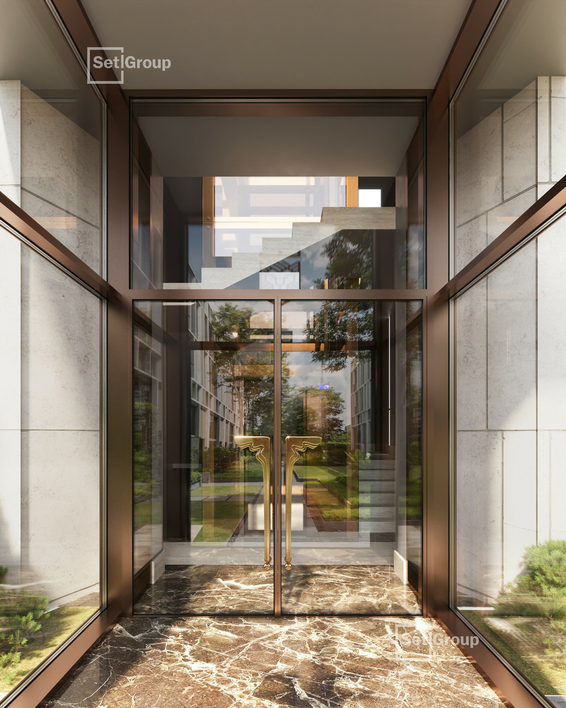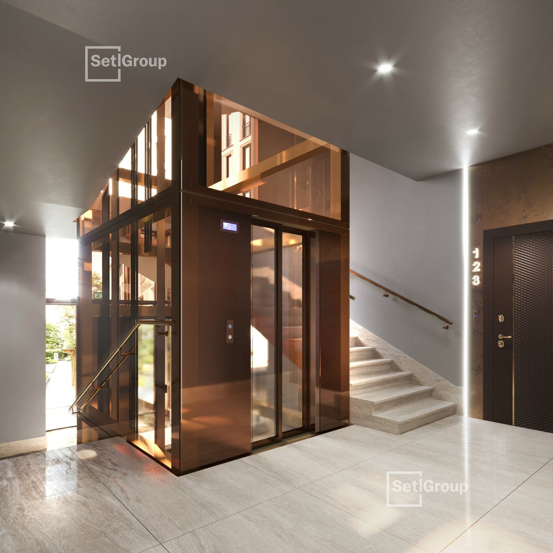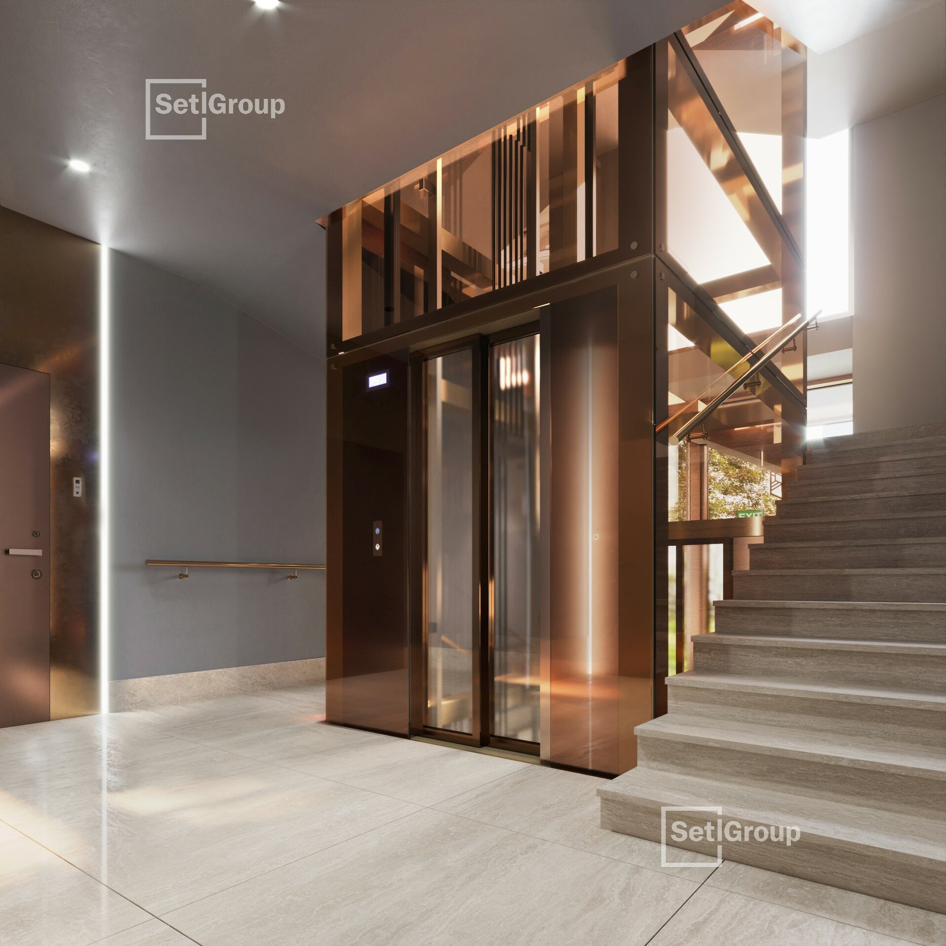 В роскошных интерьерах центральной входной группы гости и жители Imperial Club будут чувствовать себя особенными. Холлы в жилом комплексе двухуровневые, с эскалатором, дизайнерской мебелью, разноуровневым авторским освещением, лаунж-зоной и панорамными окнами.