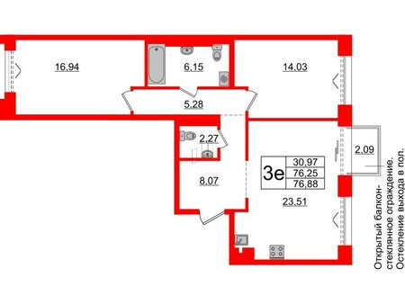 Общая площадь 76.3 м2