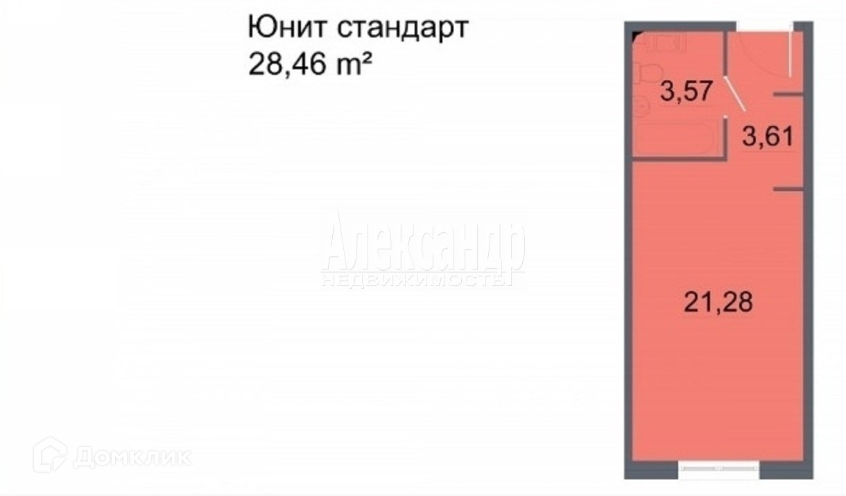 Общая площадь 28.46 м2