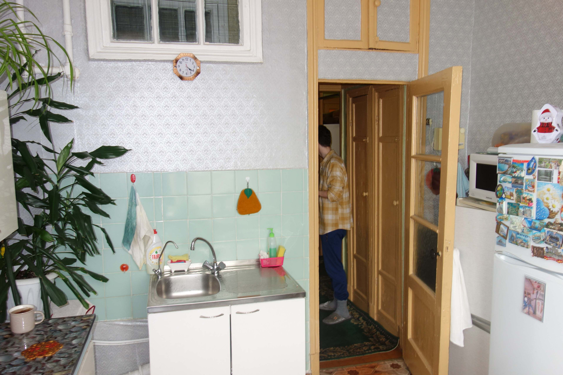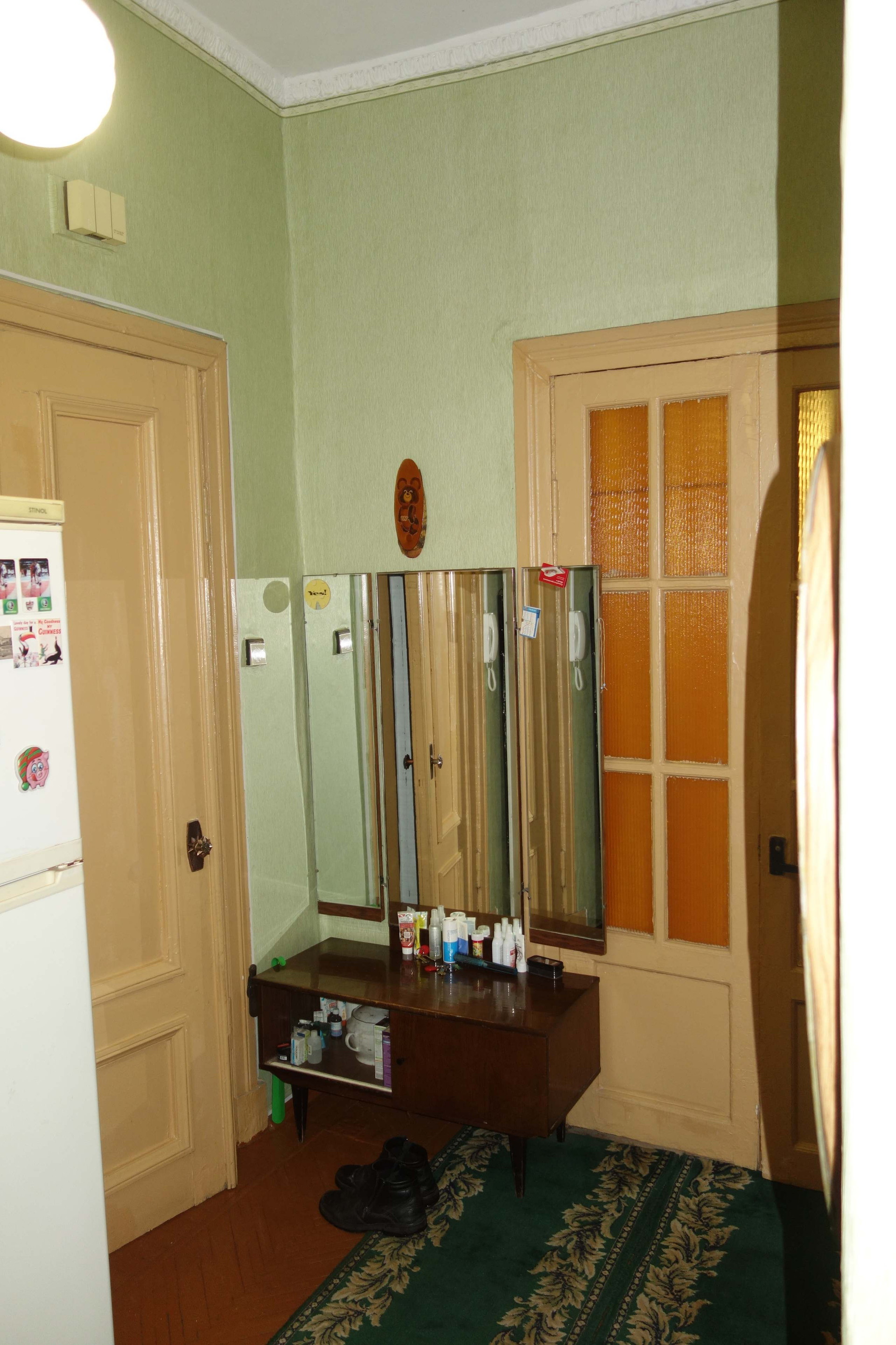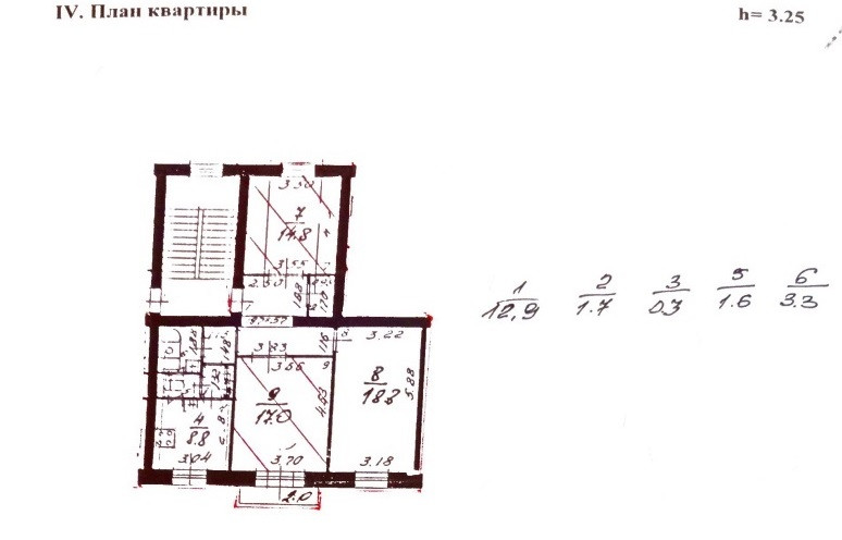 Квартира просторная - 79.2 квадратных метра. Жилая площадь 18.8+17+14.8. Кузня 8.8 кв.м. коридор - 12.9. кв.м. Есть также кладовка и не застеклённый балкон. Комнаты изолированные, сан. узел раздельный. Высокие потолки 3.24 м.
