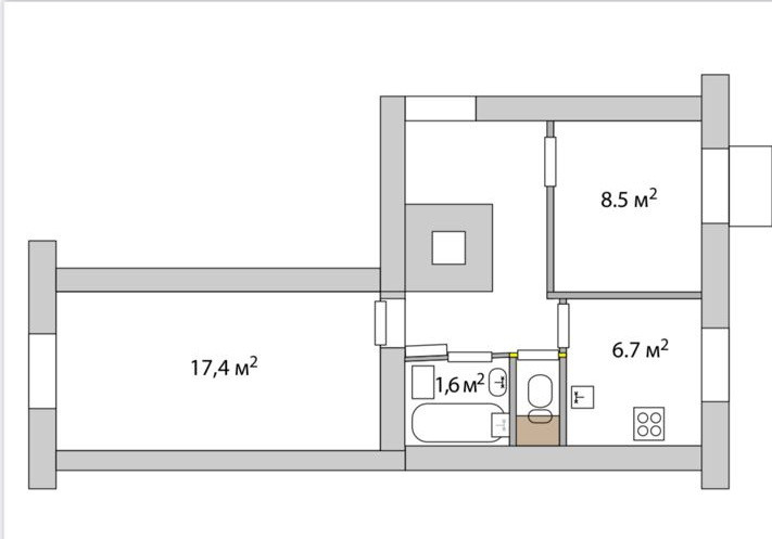 Площадь кухни 6.7 м2