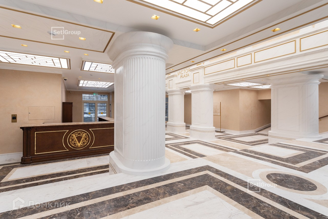 Интерьеры Victory Plaza выполнены в стиле модерн. Декор холлов построен на сочетании белого цвета и золота. Плавные изогнутые линии, утонченность форм, приглушенный свет создают аристократичную атмосферу.