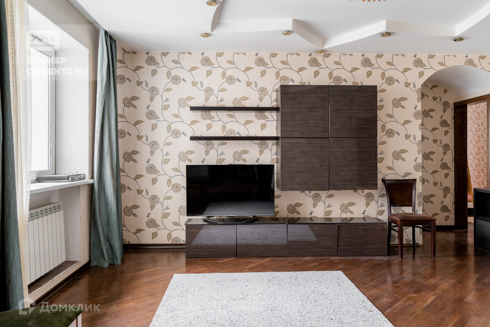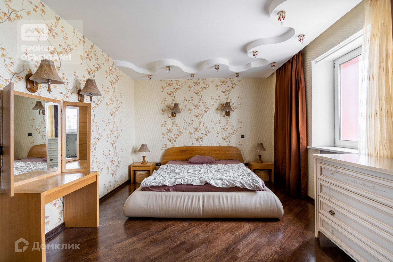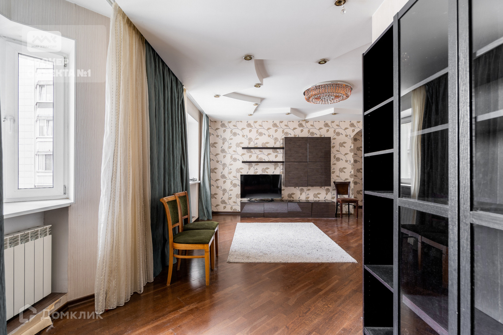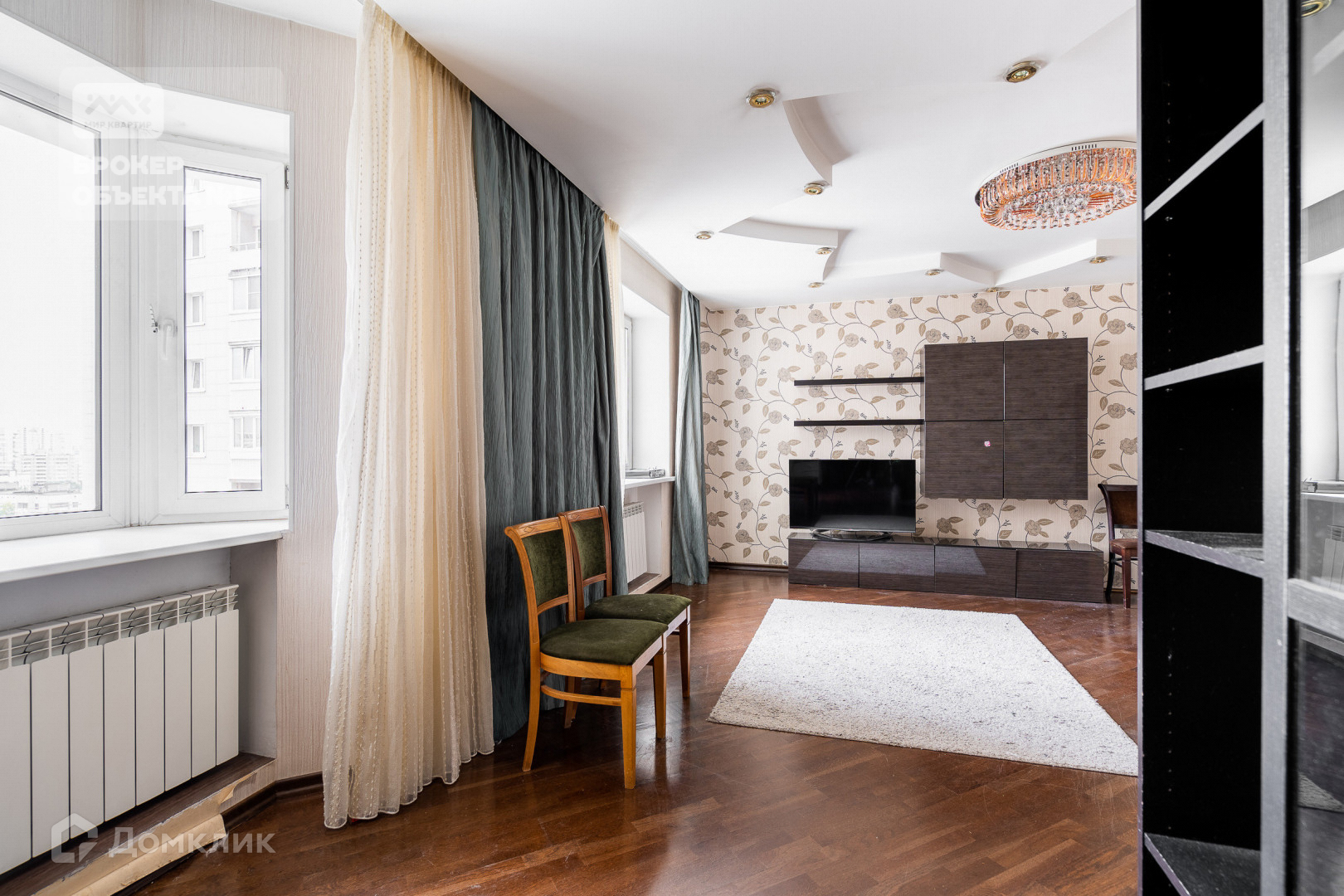 Отделка стен и пола выполнена в теплых и спокойных тонах. В просторной кухни-столовой остается вся бытовая техника. Мастер-спальня с санузлом, просторной гардеробной и застеклённой лоджией с видом на парк и Смольный собор.  Детская комната с балконом видом на парк. Вторая детская и гостиная в тихий двор.