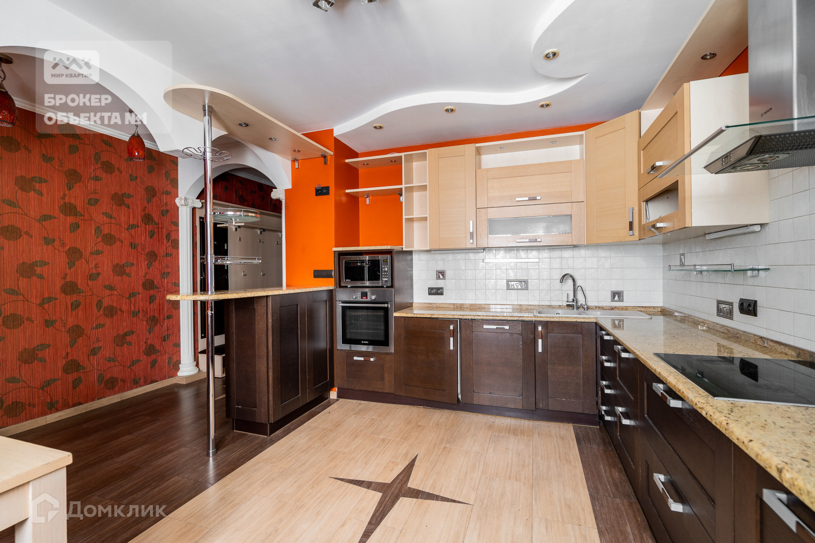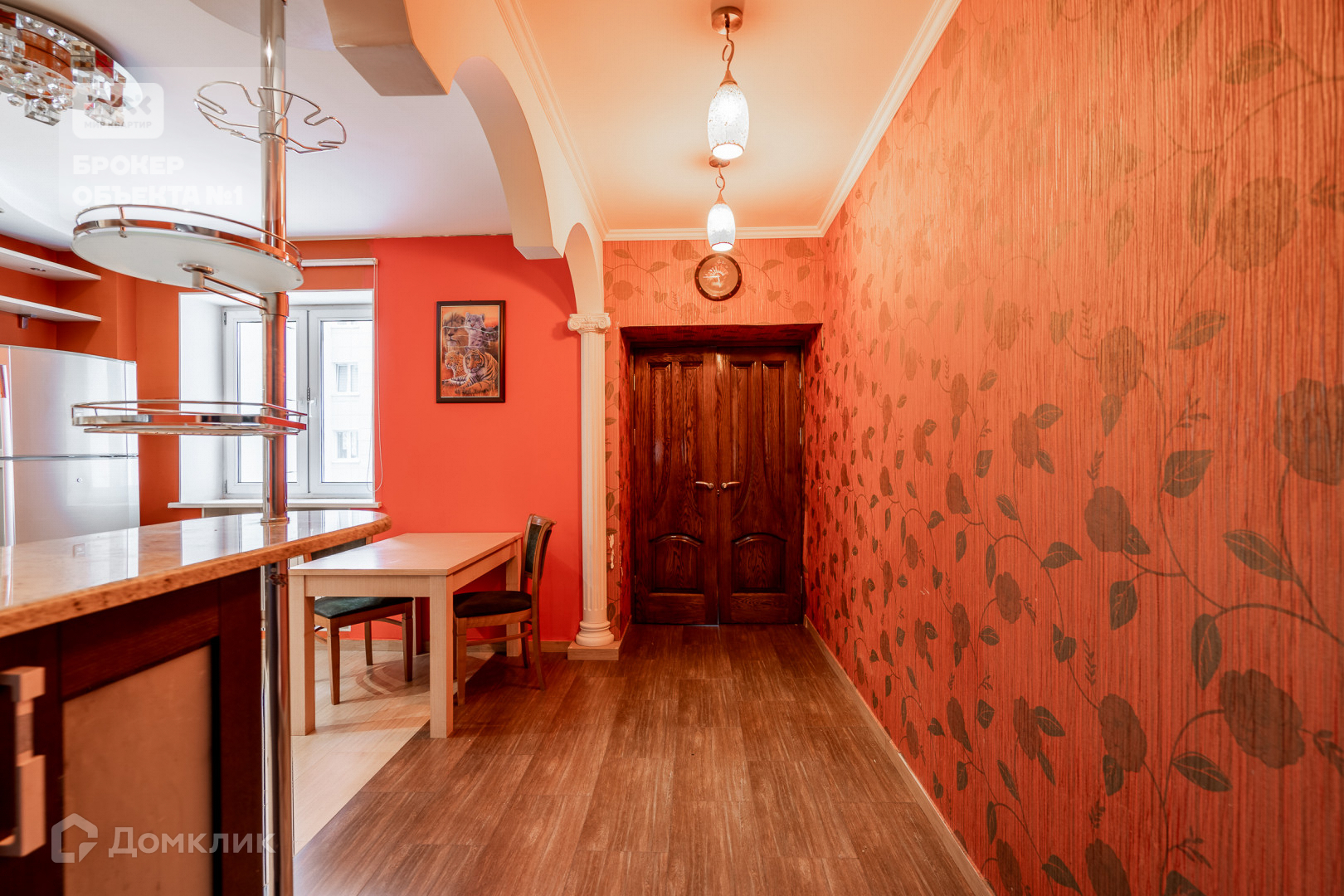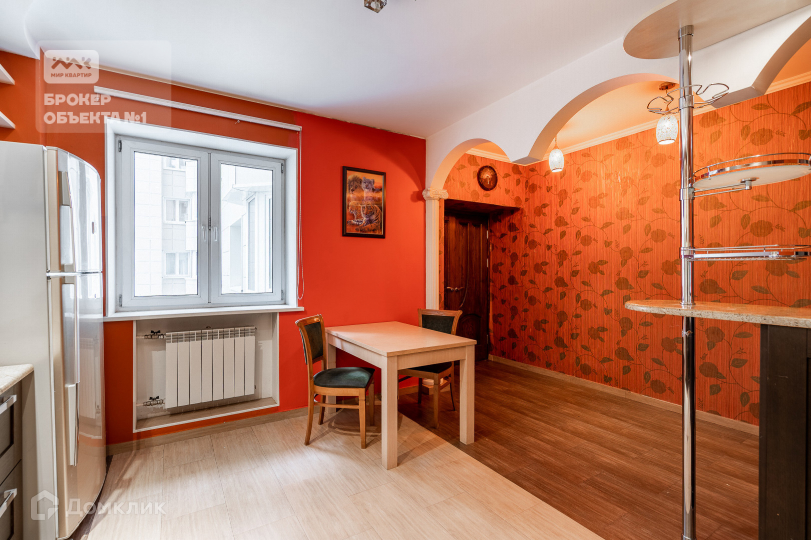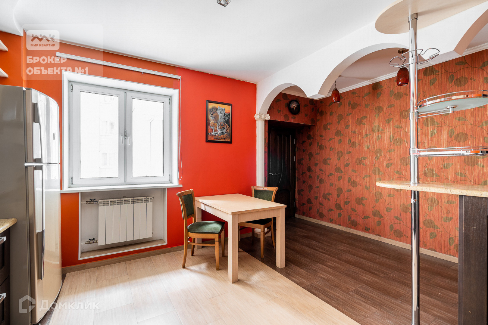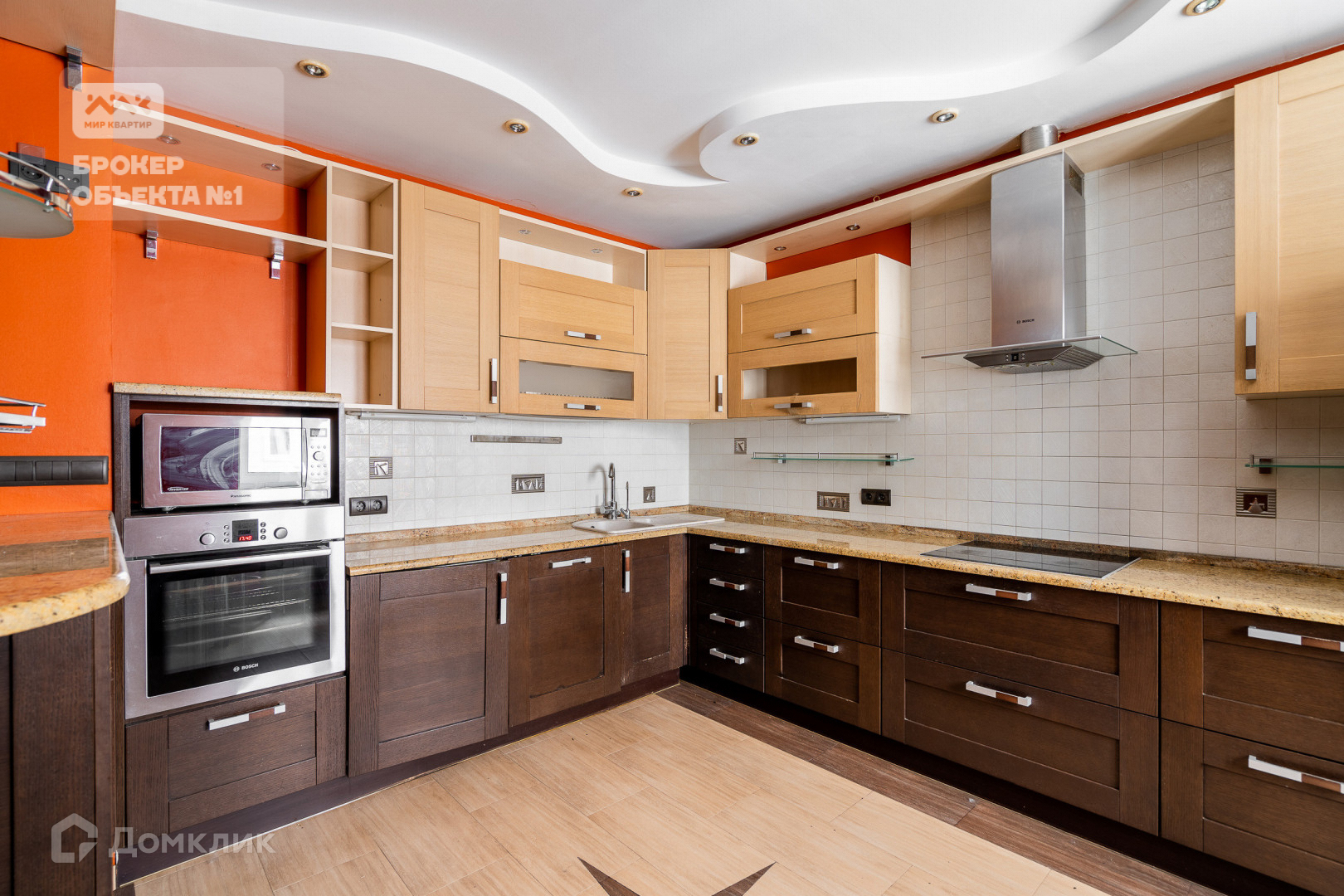 Отделка стен и пола выполнена в теплых и спокойных тонах. В просторной кухни-столовой остается вся бытовая техника. Мастер-спальня с санузлом, просторной гардеробной и застеклённой лоджией с видом на парк и Смольный собор.  Детская комната с балконом видом на парк. Вторая детская и гостиная в тихий двор.