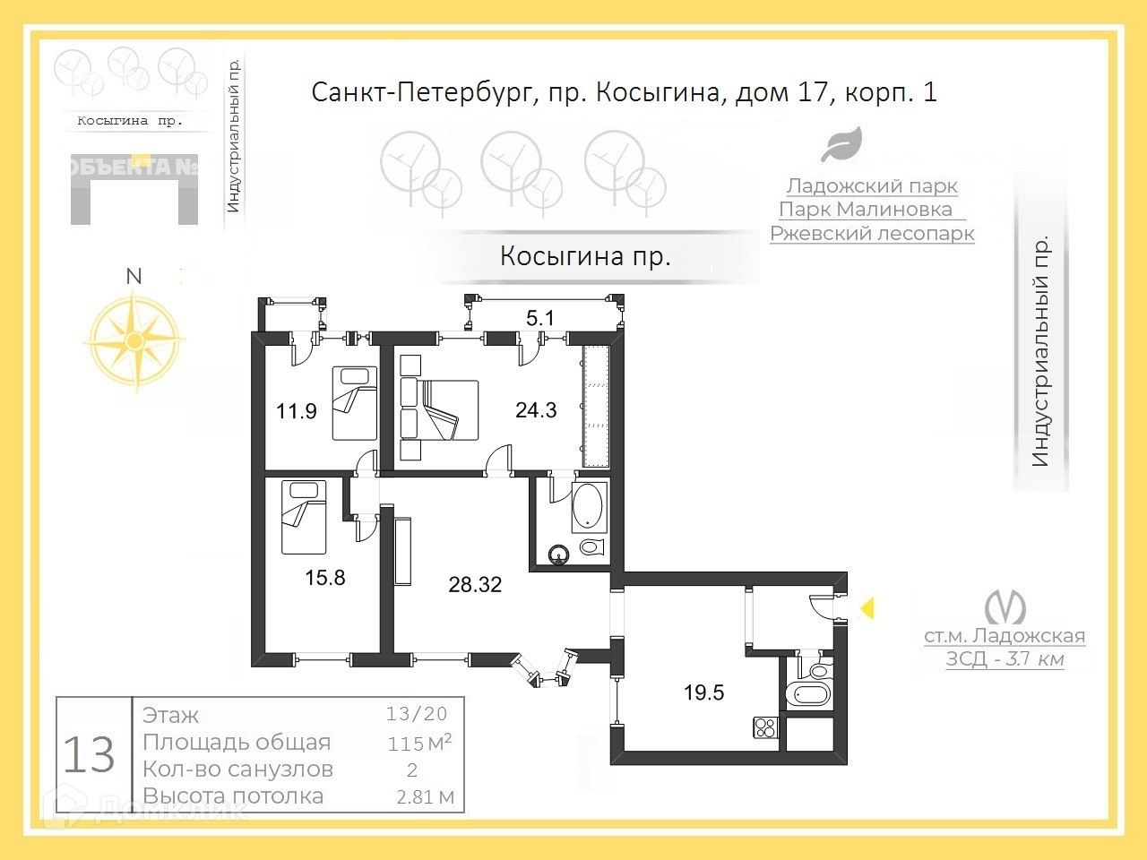 Общая площадь 115 м2