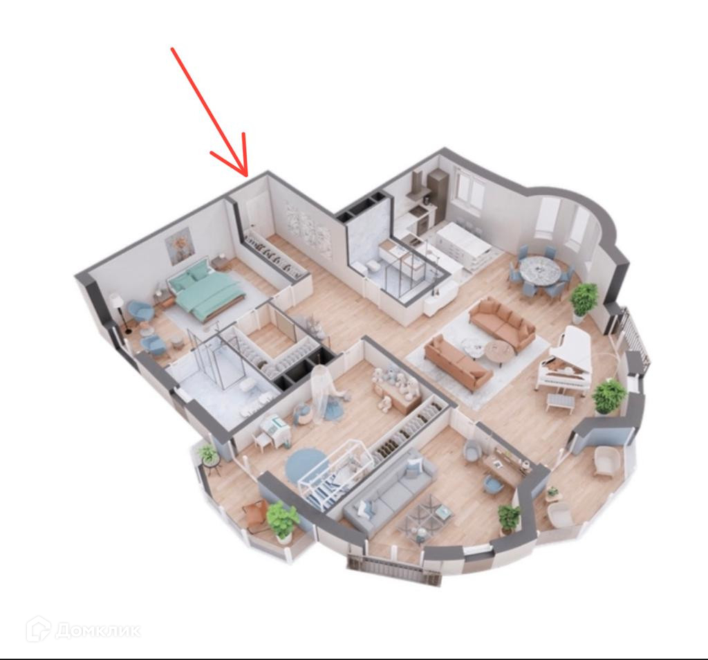 Две мастер спальне по 20м2, детская с панорамным остеклением в пол, ванная комната с окном.