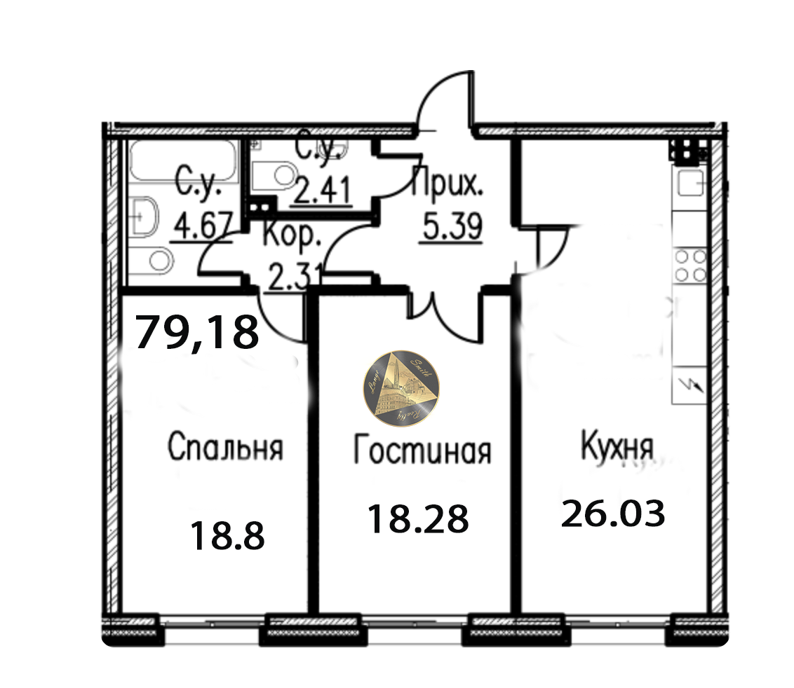 - Общая площадь квартиры 79,18 м2.