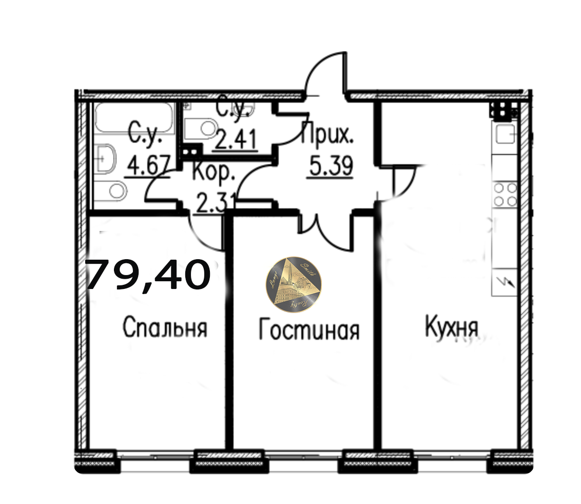 - Общая площадь квартиры 79,40 м2.