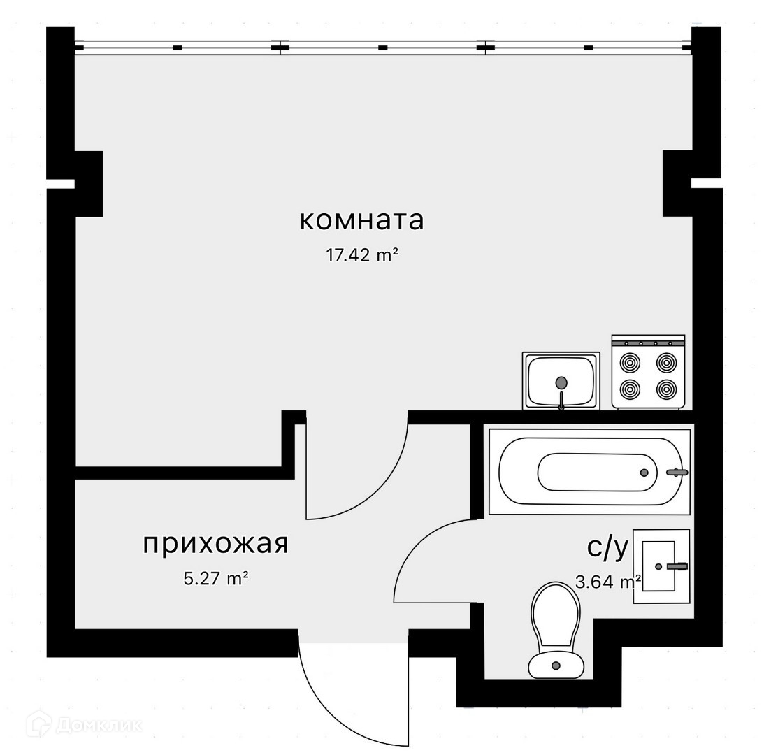 Общая площадь 26,3 кв.м.