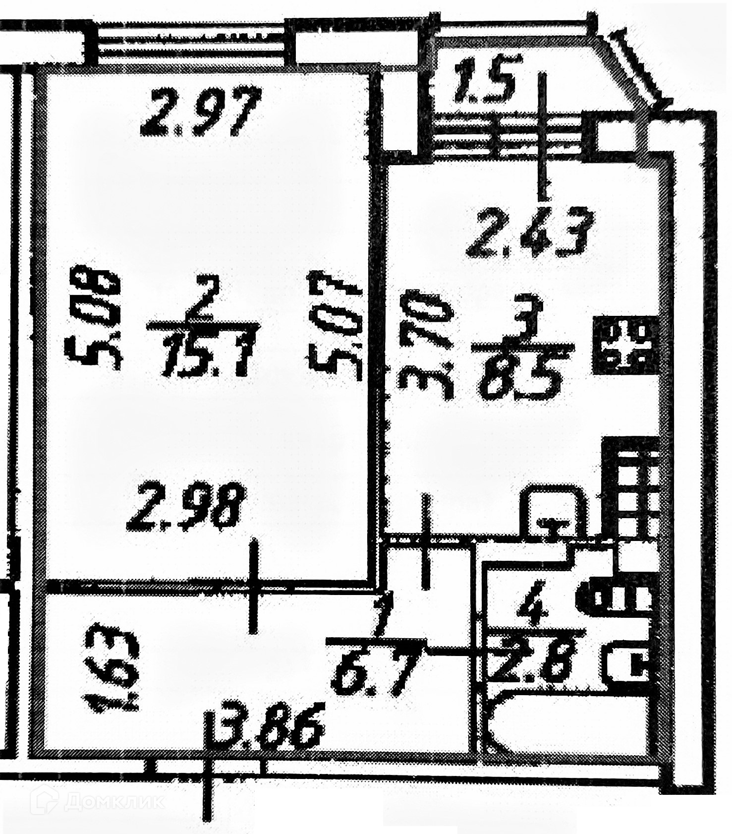 Жилая площадь 15.1 м2
