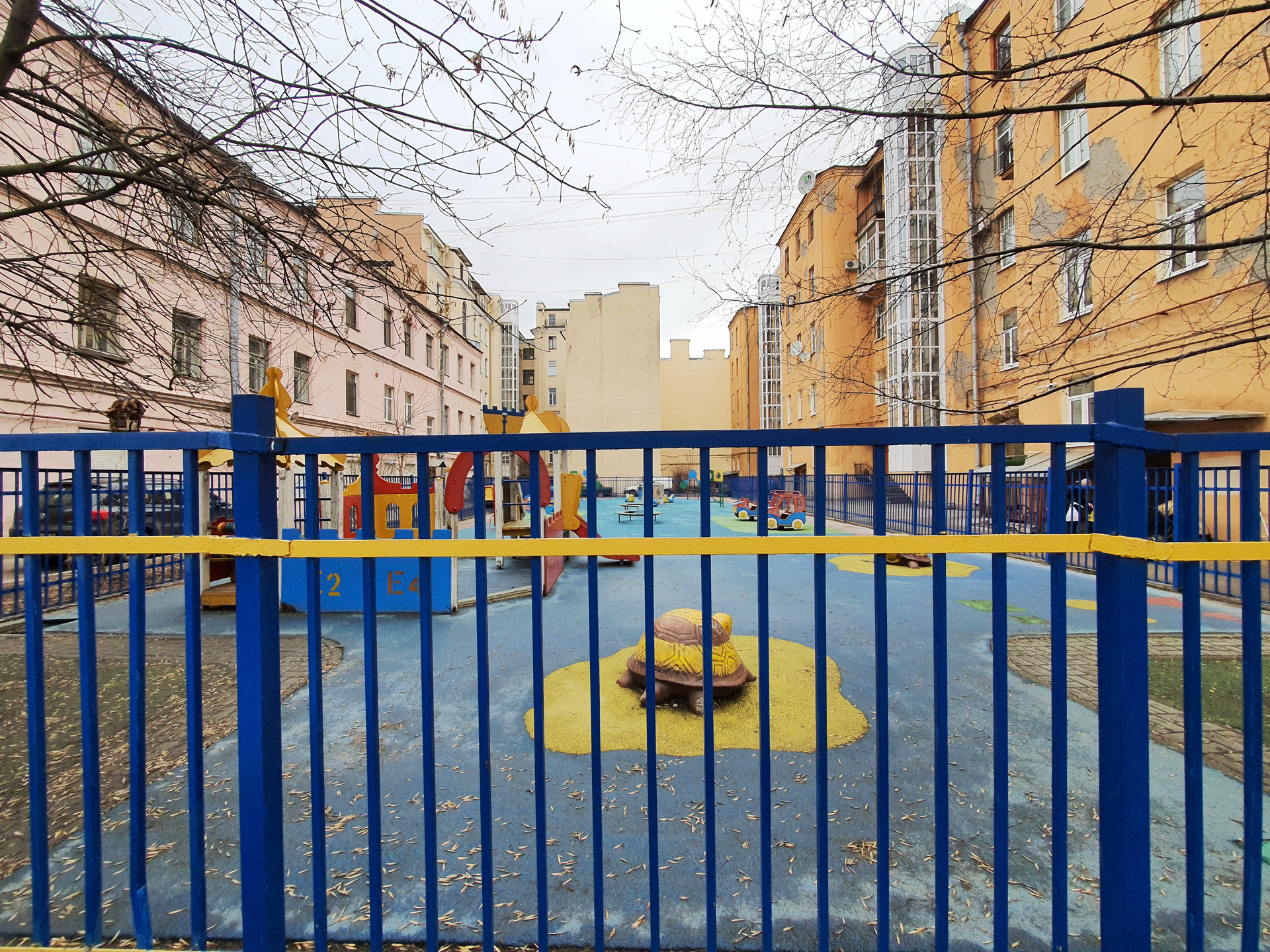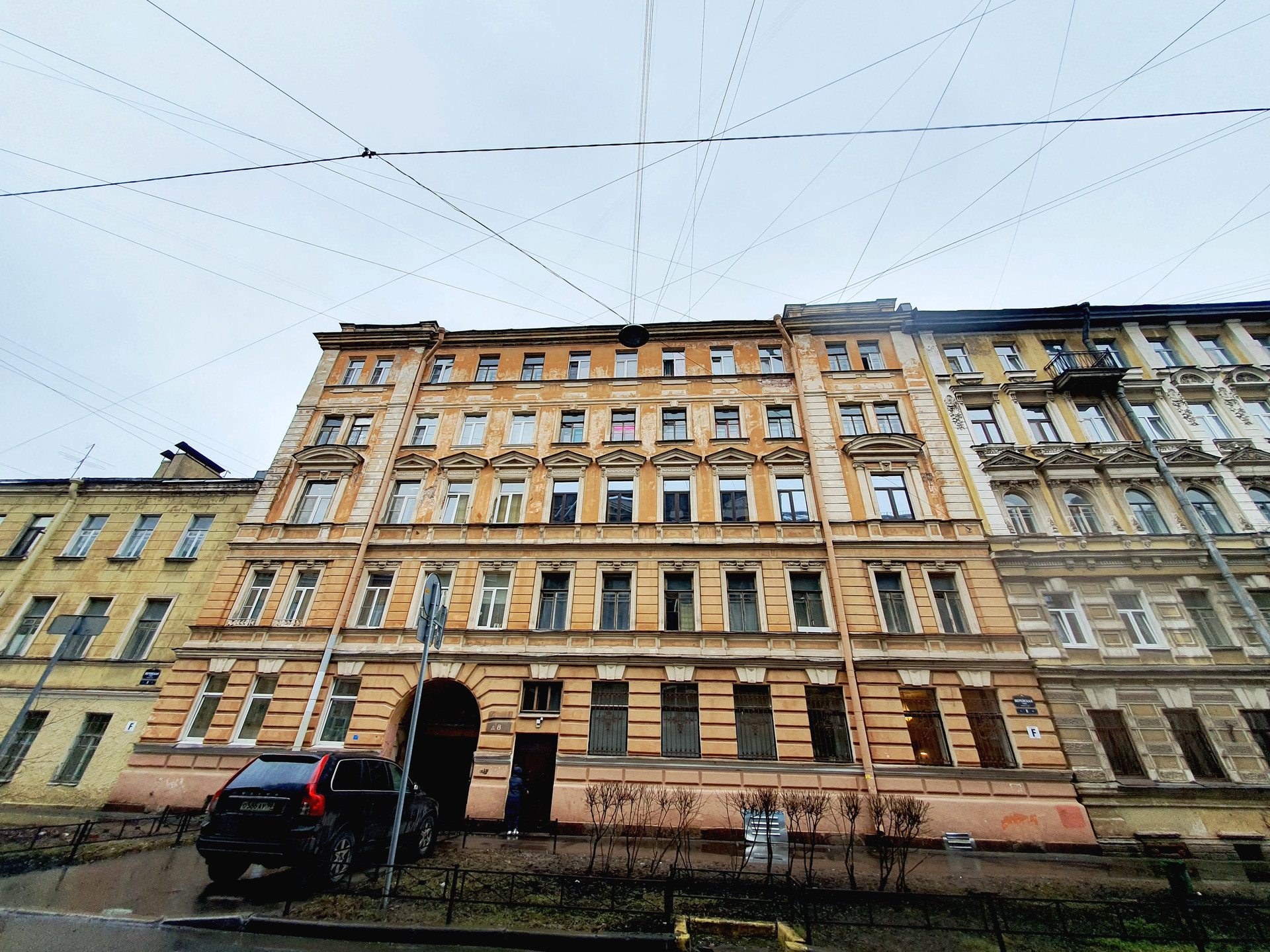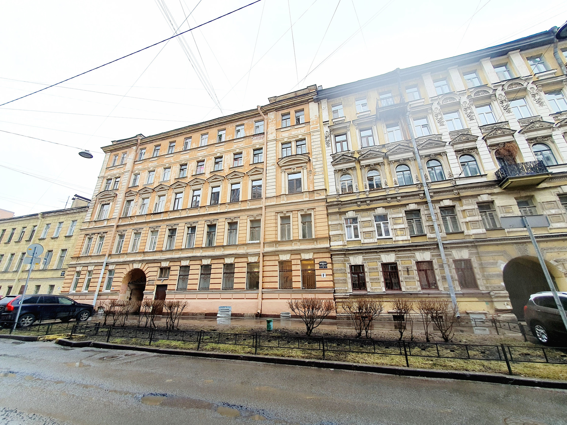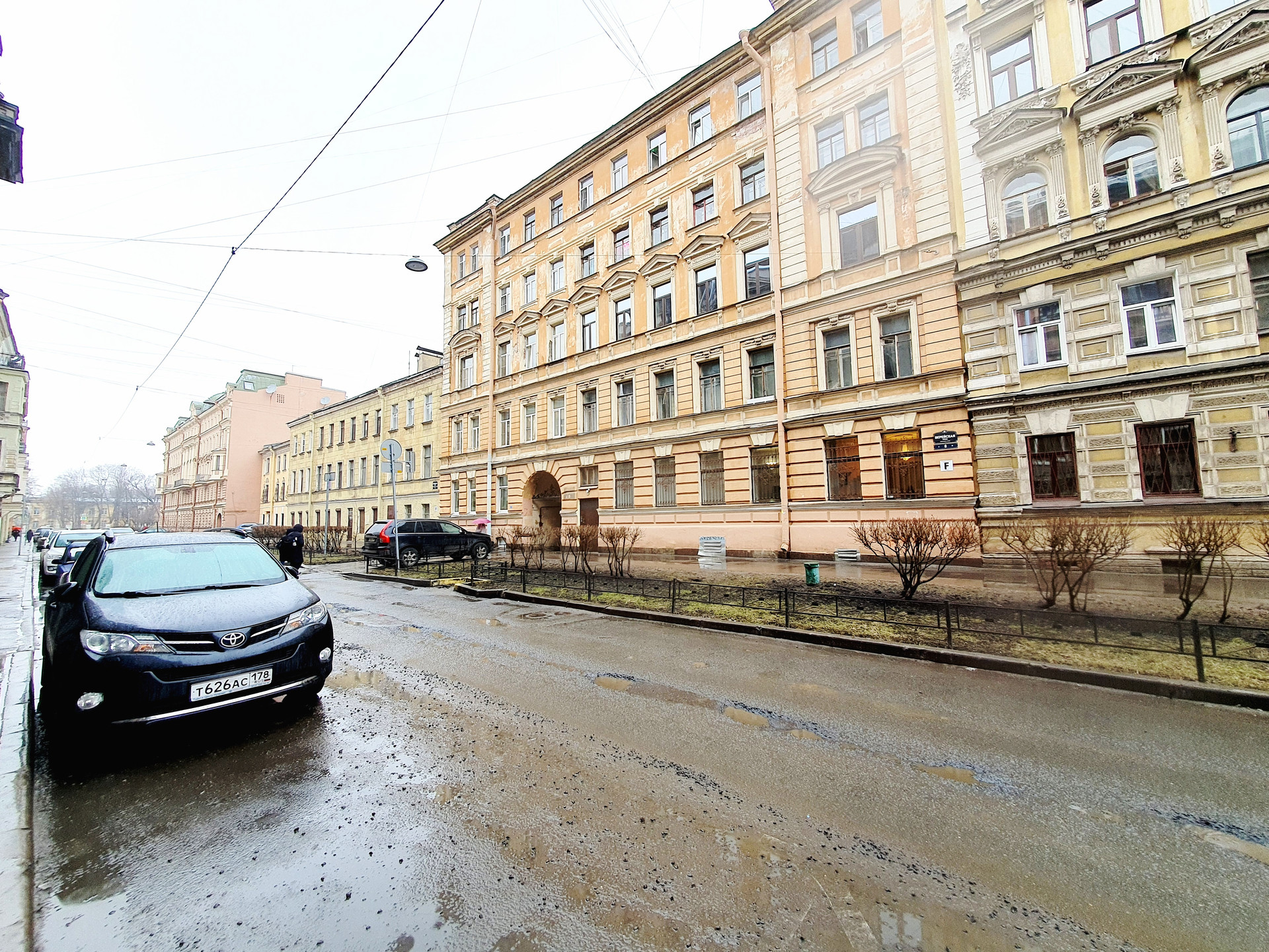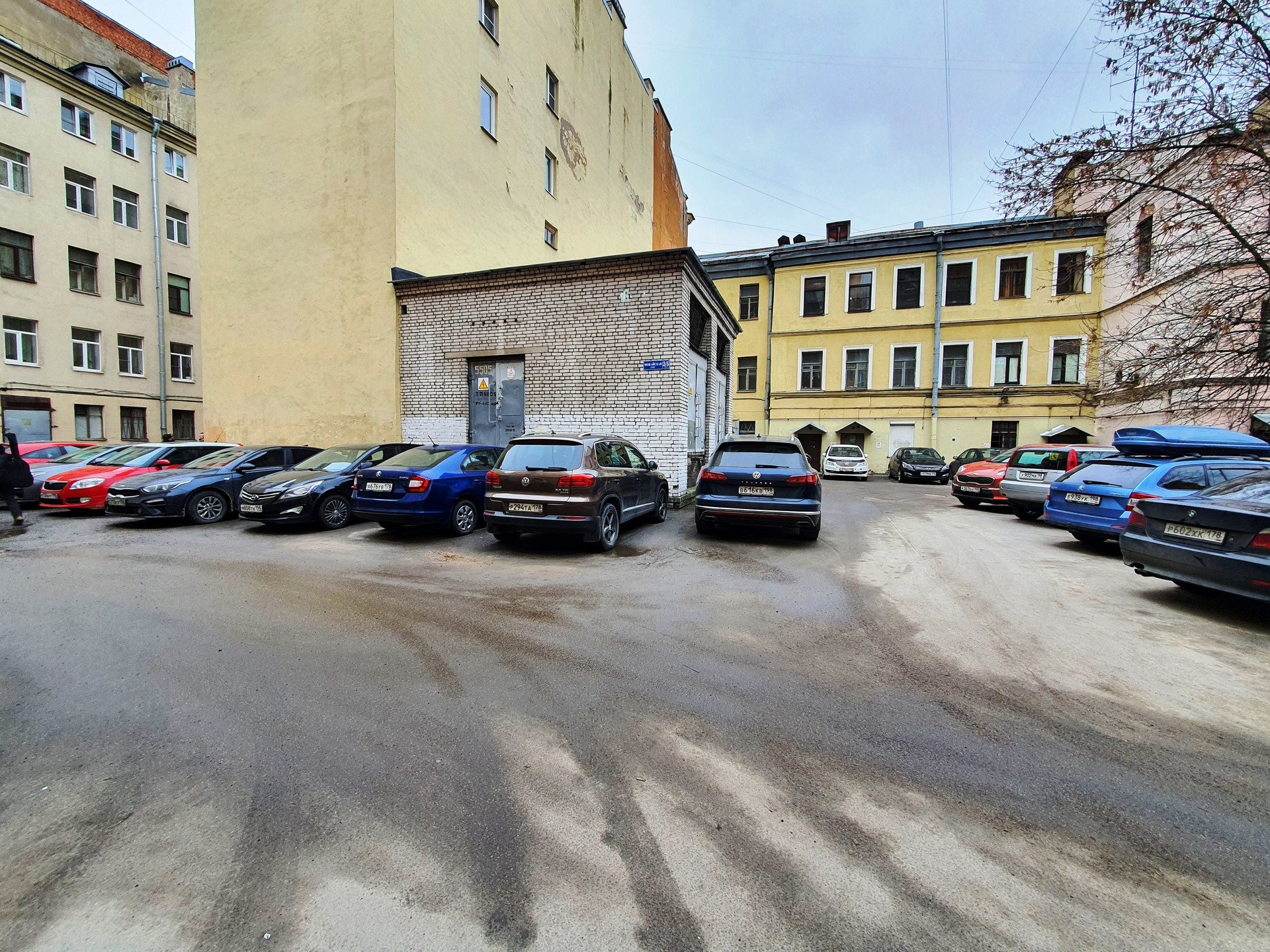 В просторном дворе с возможностью въезда с  Верейской и Можайской улиц имеется много бесплатных парковочных мест. Детская площадка.