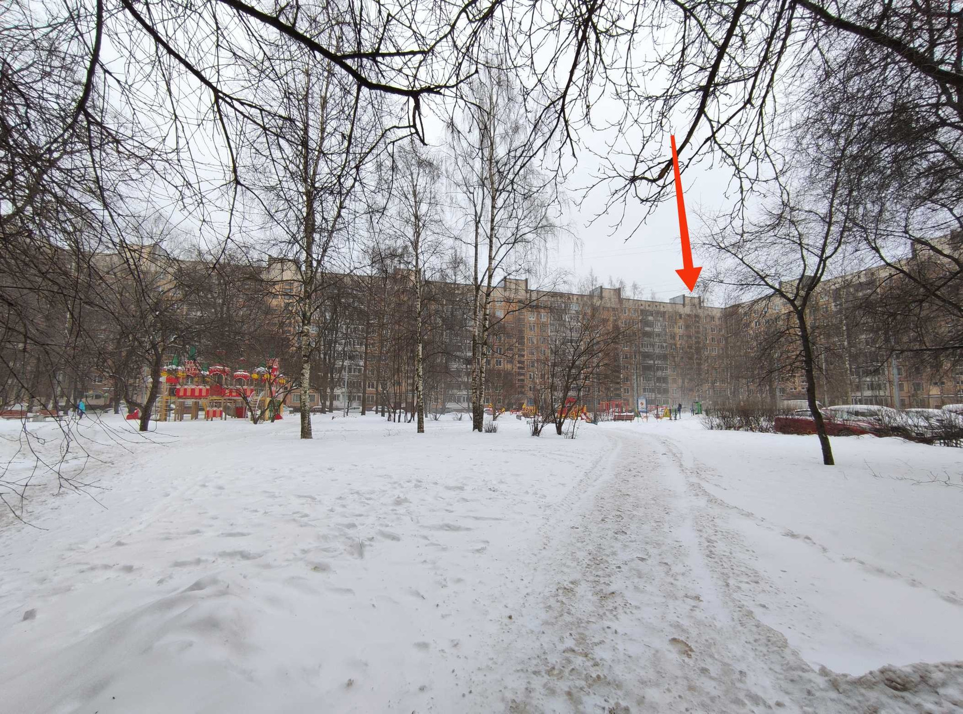 Во дворе детские площадки.