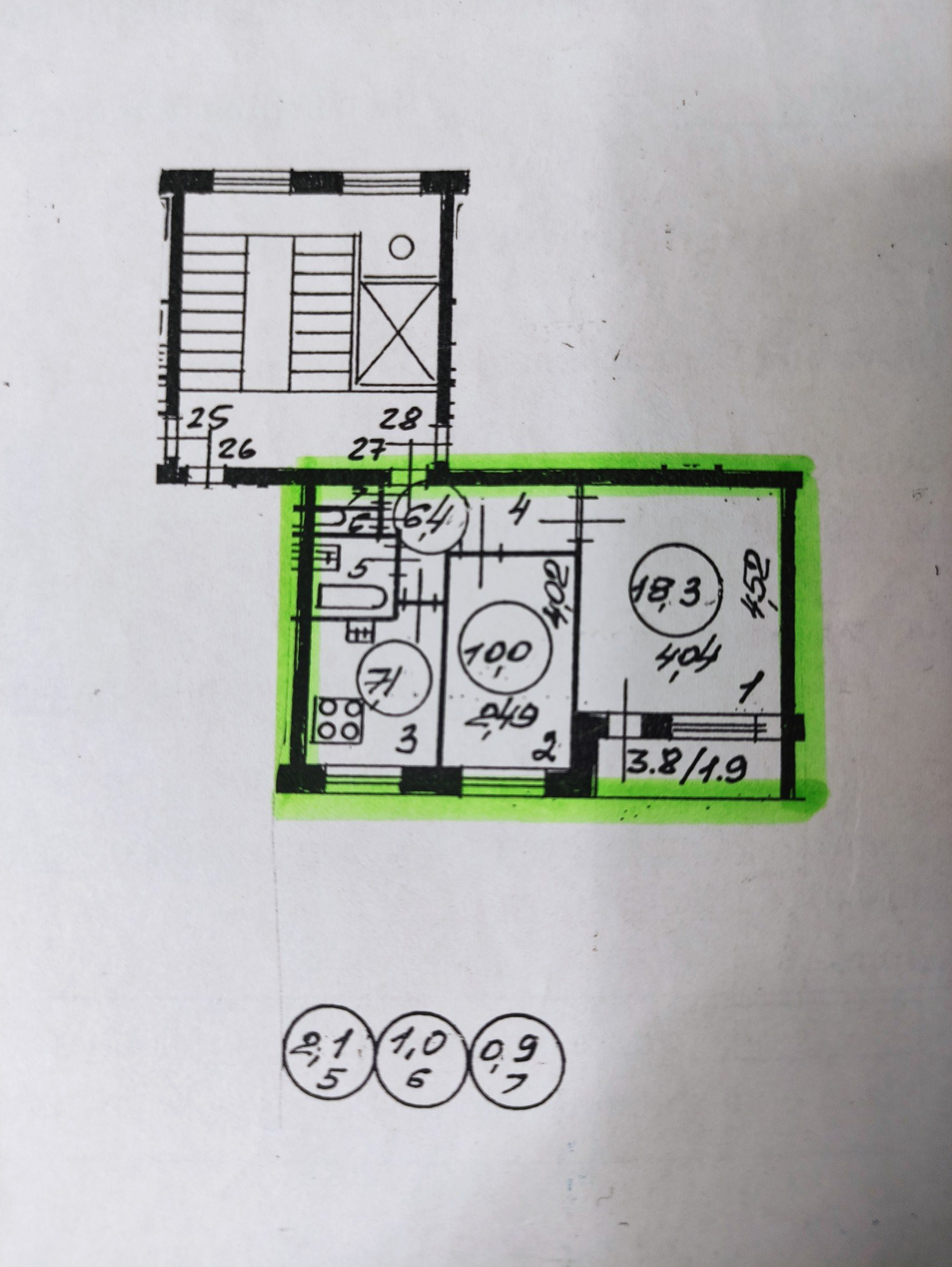 Жилая площадь 28.3 м2