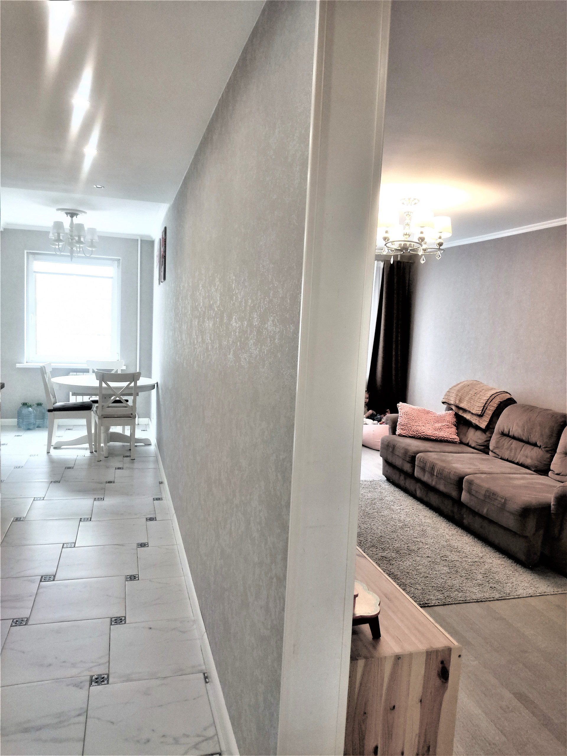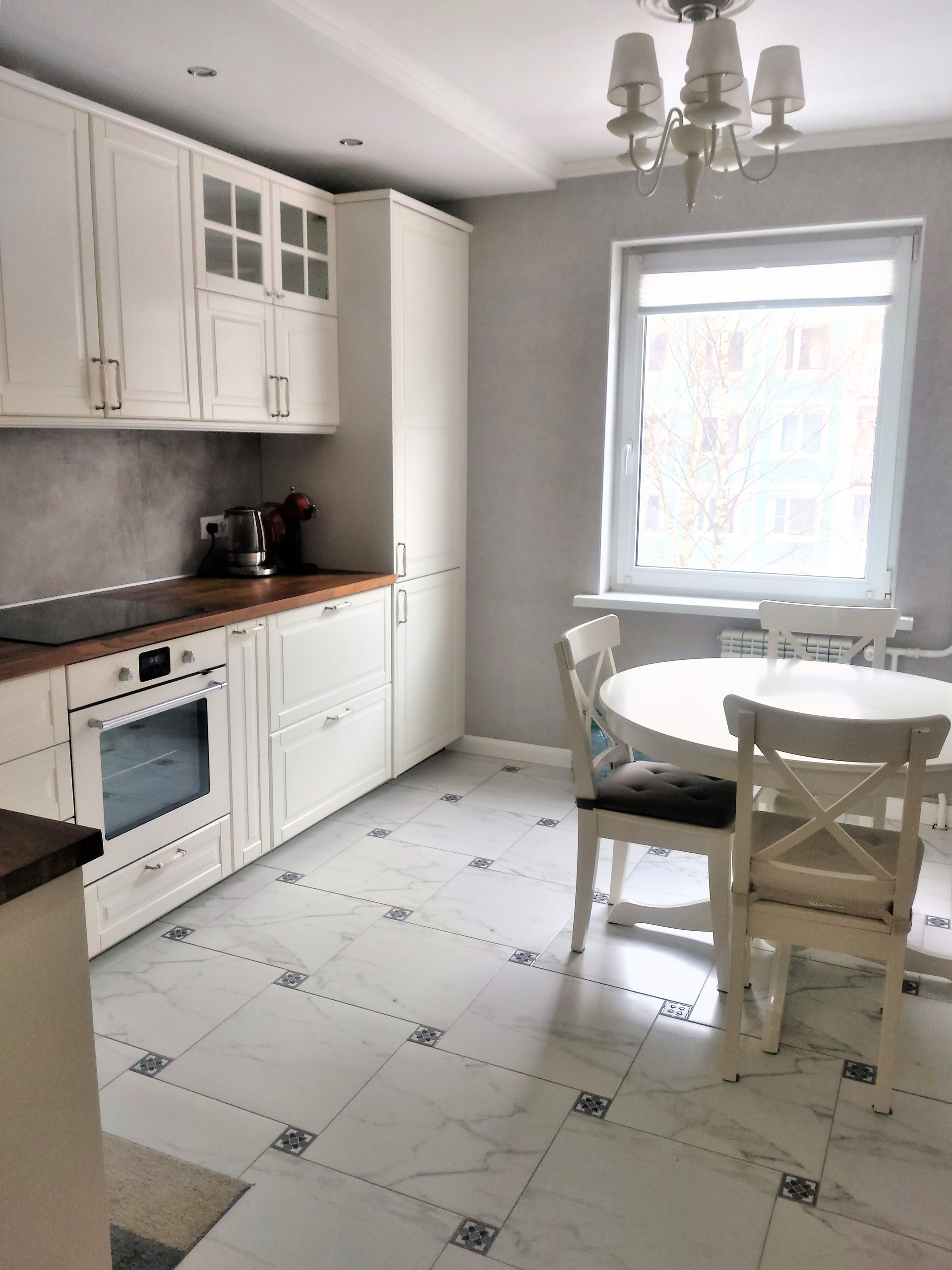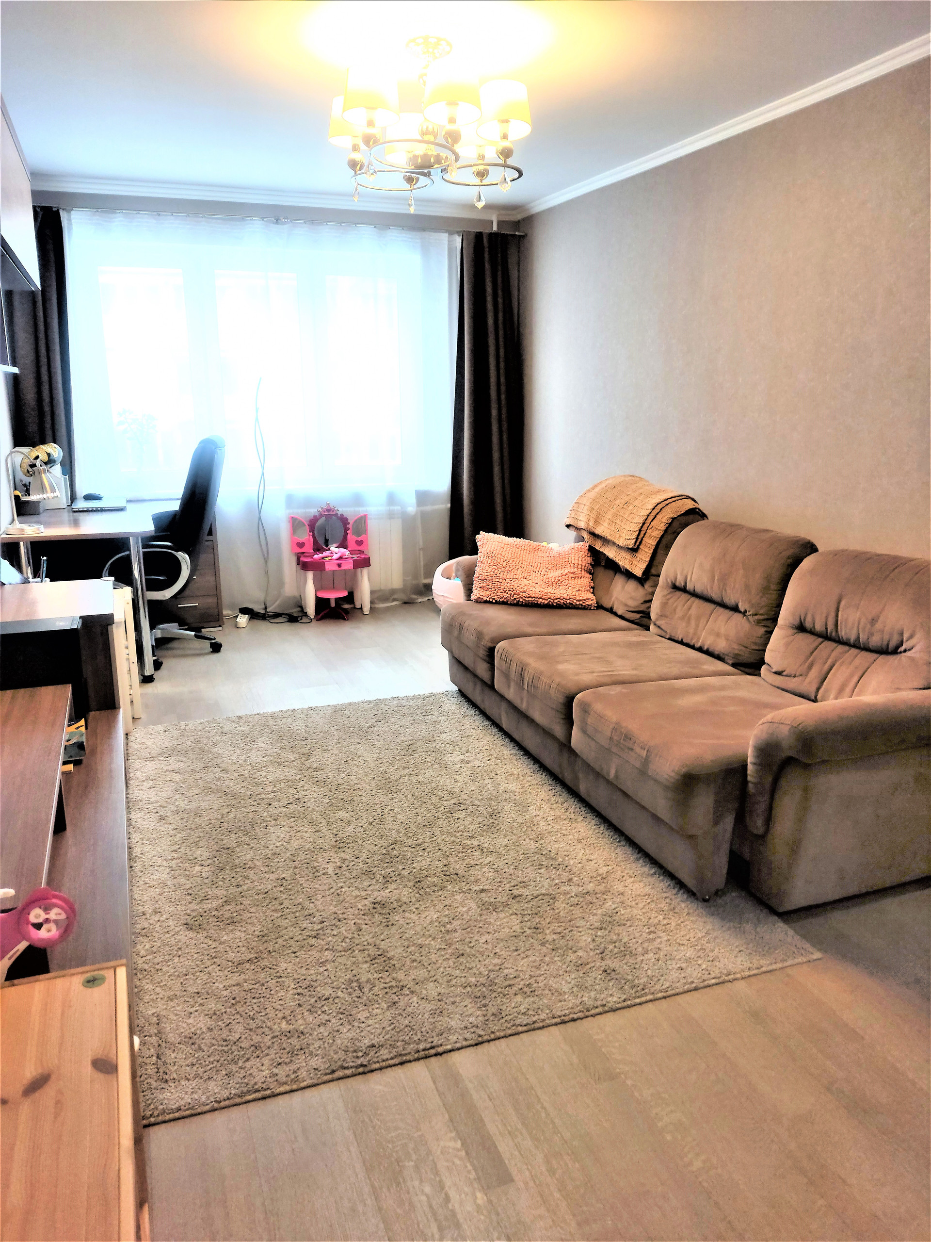 Квартира двухсторонняя, с полной обстановкой, увозят только детскую мебель и телевизор. Вся техника, кроме мелкой, остается. Светлая, красивая с хорошей планировкой квартира. Комнаты не "чулком", широкие и просторные.. Необходимое и достаточное пространство для жизни, без переплат за лишнюю площадь, все для удобства и практичности. Ремонт сделан 3 года назад. Частично подшивные потолки, пол керамогранит и паркетная  доска ,конечно, везде стеклопакеты , ну и хорошая техника на кухне. Сама кухня от ИКЕИ, как и шкаф купе .