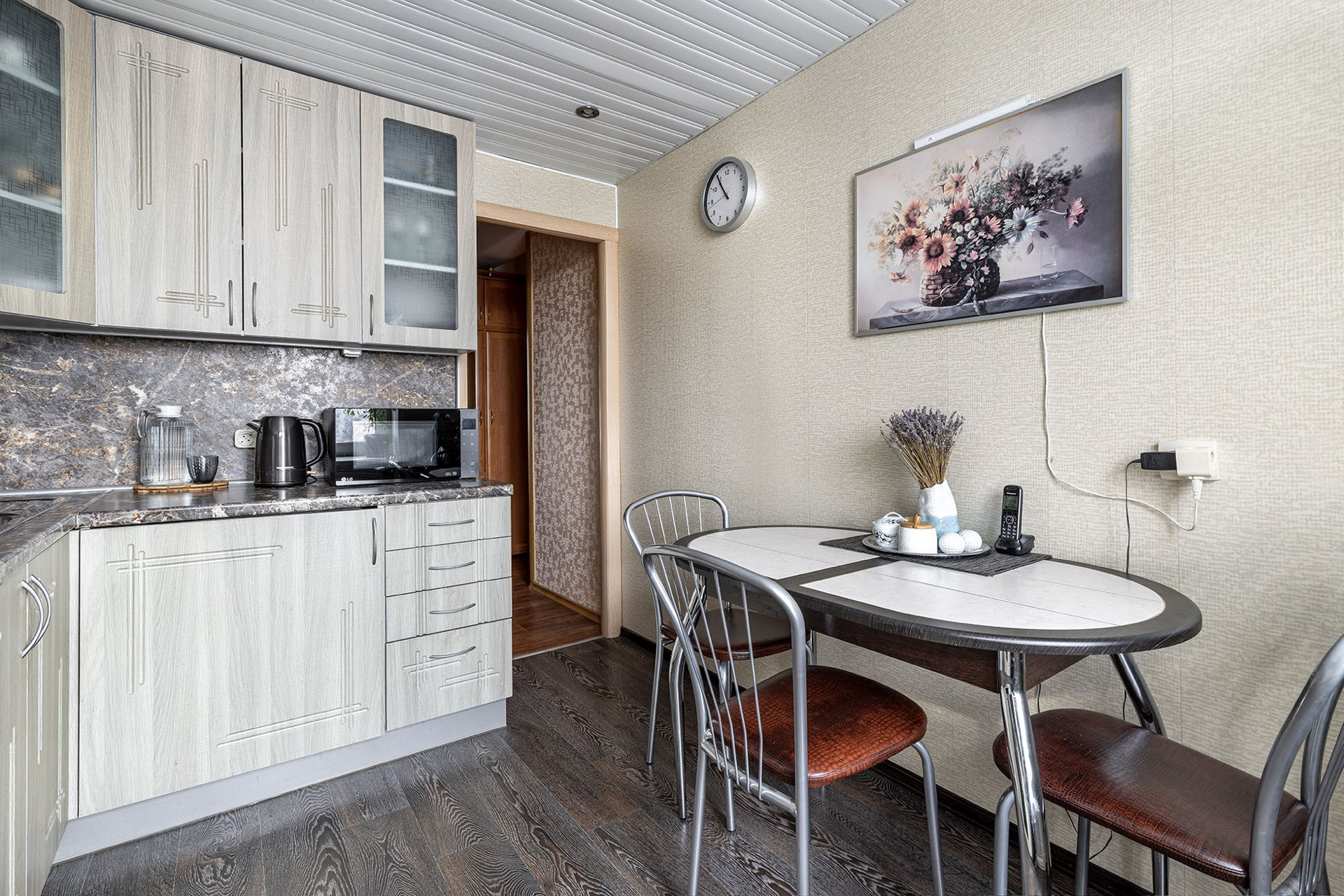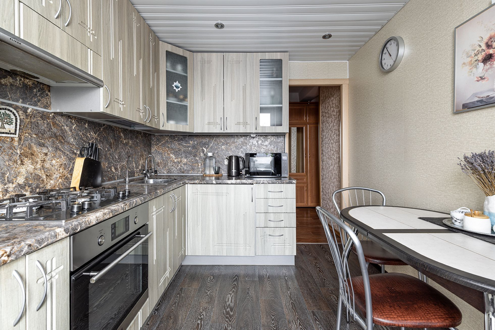 Кухня 8,2 м2: просторная, хороший гарнитур, замечательный вид из окон;
