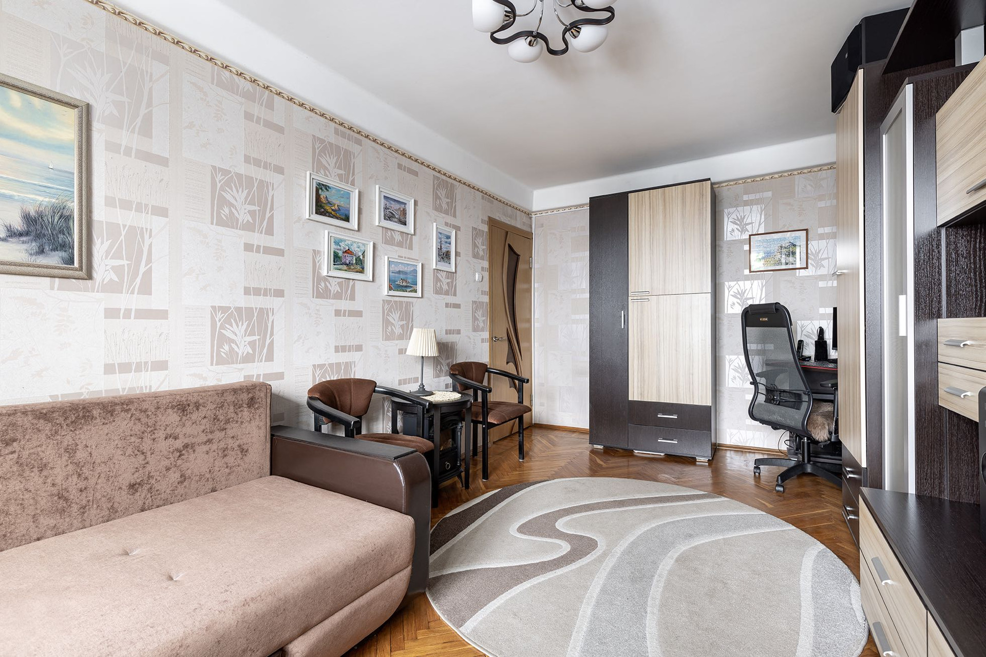 Две изолированные комнаты: одна 17,3 просторная, установлен диван, стенка;