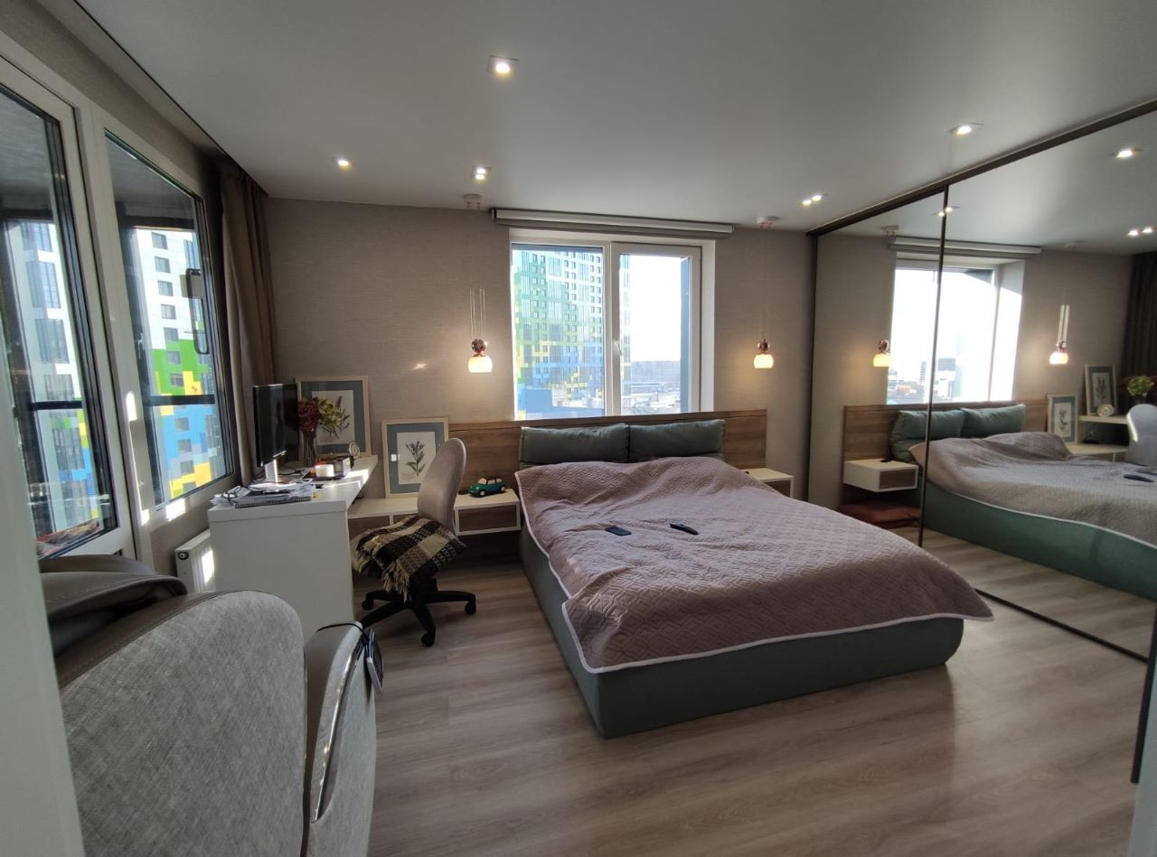 В квартире сделана шумоизоляция. Везде теплые полы, в квартире кварцвиниловая плитка (finefloore), дизайнерский супер стойкий пол, отделка санузлов керамогранит крупноформатный, отделка стен- немецкие антивандальные обои Marburg и итальянские bertolucci, в спальне и на большой лоджии фрески. Отделка лоджий декоративная штукатурка и текстурная краска.