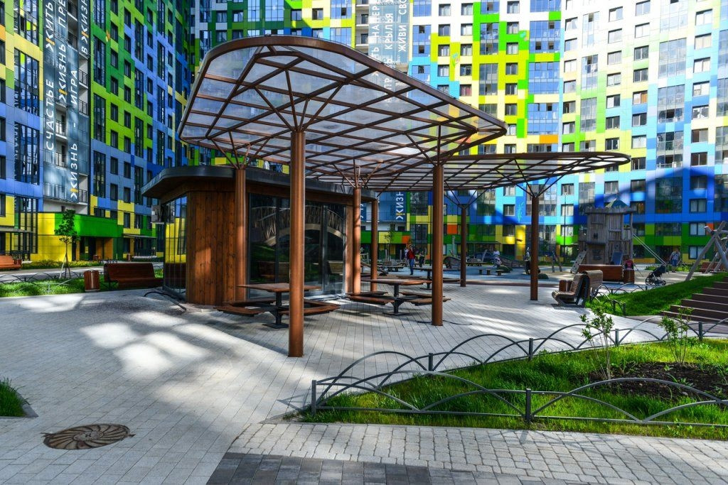 ЖК с закрытой охраняемой территорией, по всему периметру видеонаблюдение, большой двор без машин, ландшафтный дизайн, детские площадки, зоны отдыха, пешеходные и велодорожки.