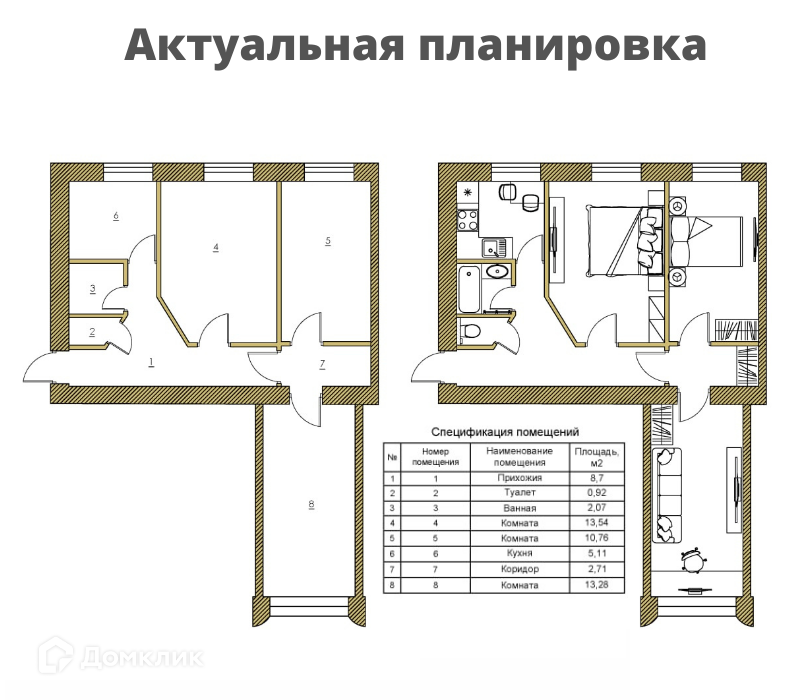 Жилая площадь 41.9 м2