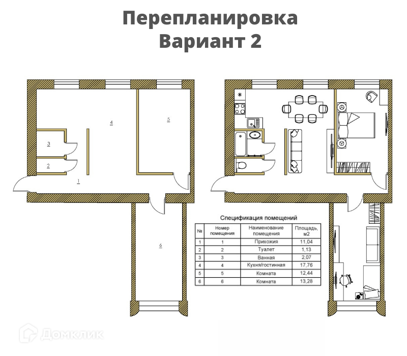 Общая площадь 57.5 м2