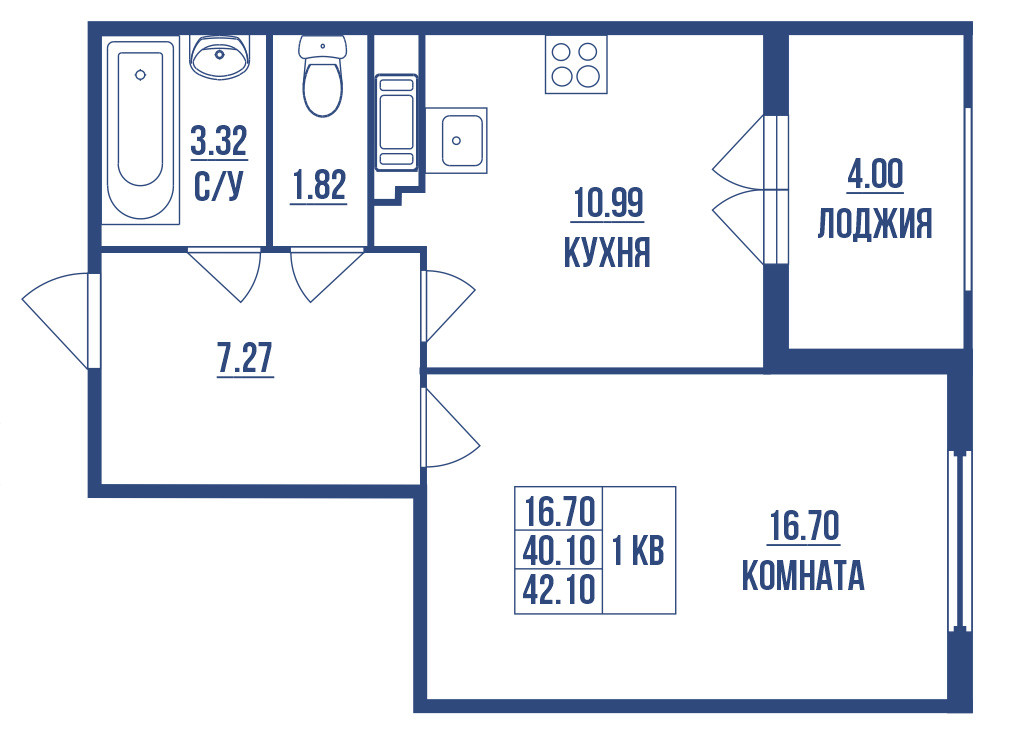 Общая площадь 40.1 м2