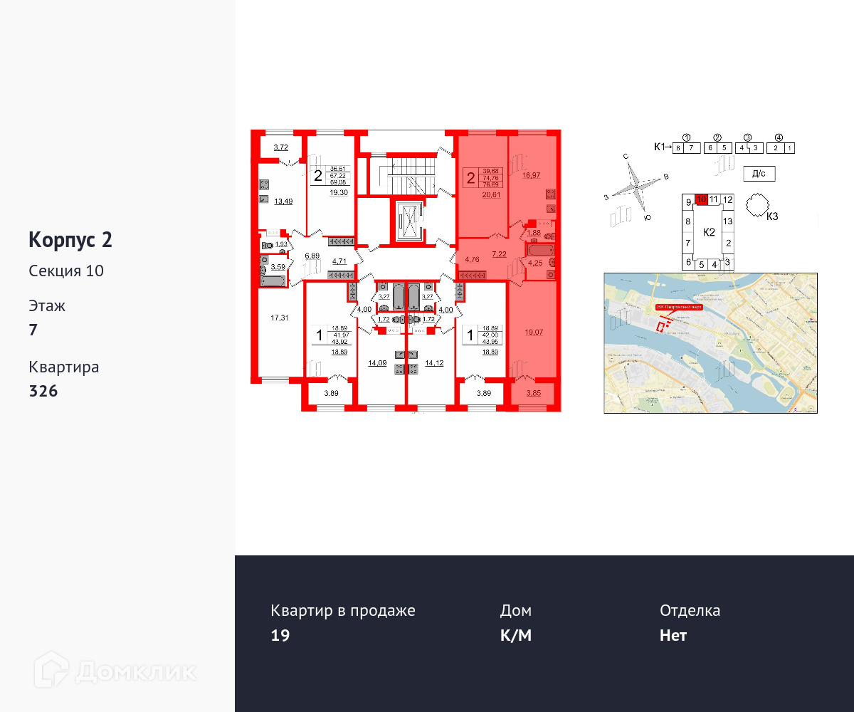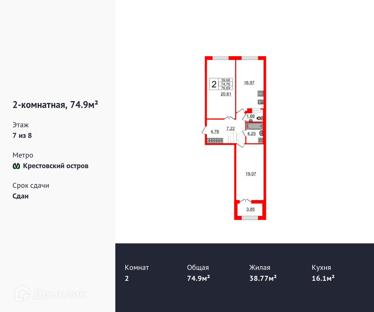 Продается двухкомнатная квартира в ЖК Петровский Квартал на воде площадью 74.9 м2 (жилая площадь – 38.77 м2). Квартира расположена рядом с метро Спортивная. Расстояние до метро 20 Мин.пешком. Площадь кухни 16.1 м2. Площадь прихожей 11.86 м2. Санузел – раздельный. Лоджия. Без отделки.
