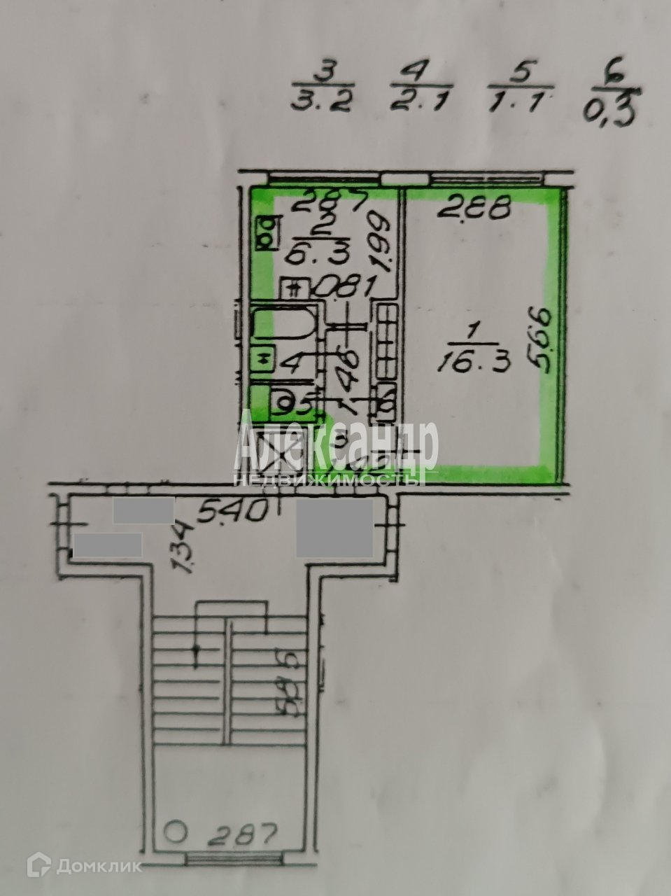 Площадь кухни 6.3 м2