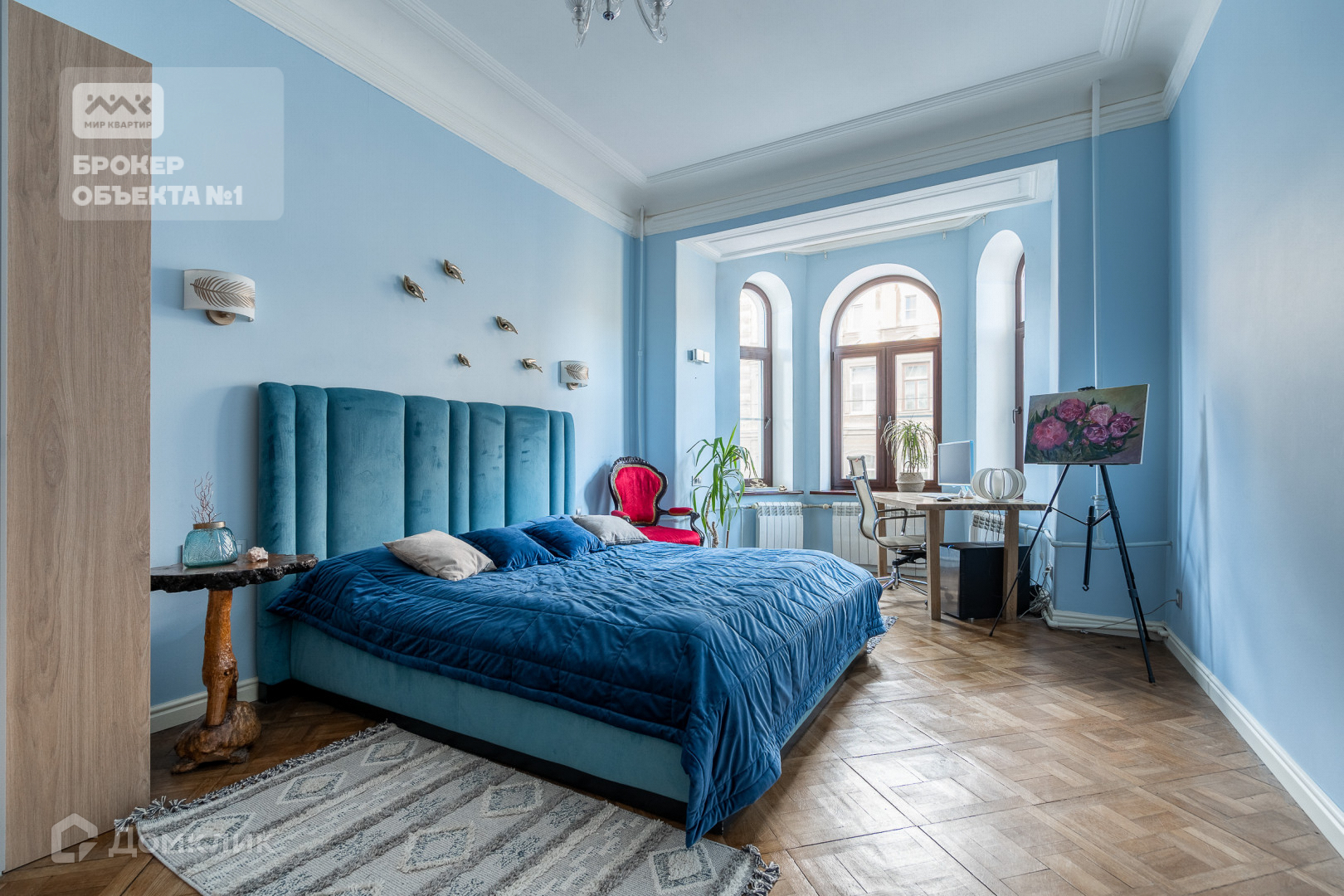 - Три спальни выходят на фасадную часть, роскошные высокие окна и потолки 3.3 метра дают много света и воздуха в квартире.
