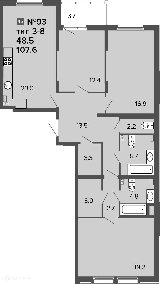 3-комнатная квартира, 109.45 м2, этаж 4 / 6, на продажу в Санкт-Петербурге, 11-я Красноармейская улица, 11