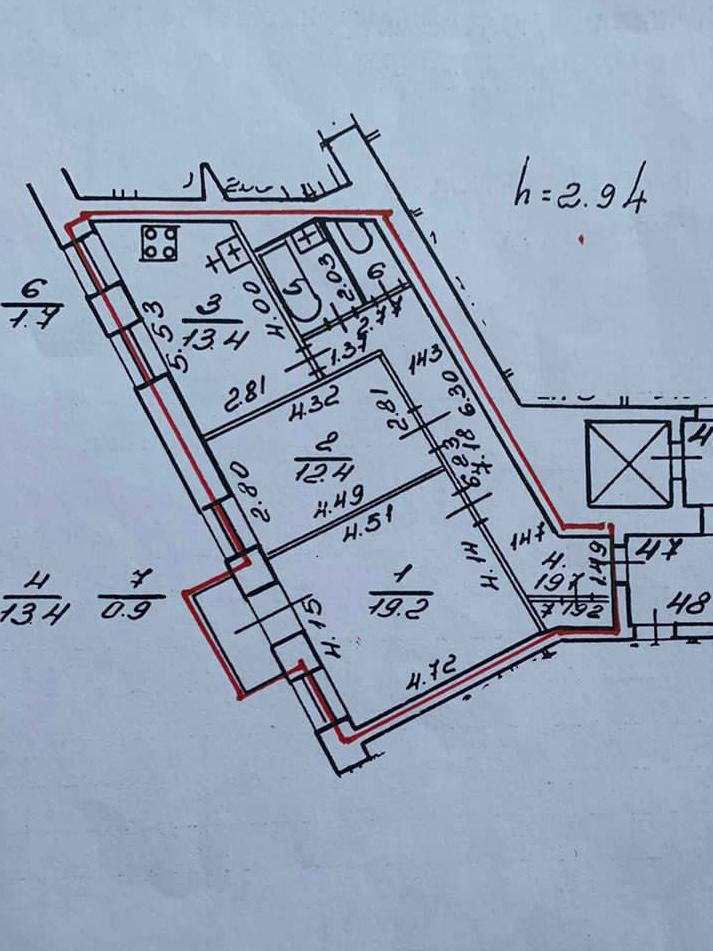 Квартира 64.1 метра, комнаты 19.2 и 12.4, раздельные. Санузел просторный, кухня 13 метров. Есть балкон.